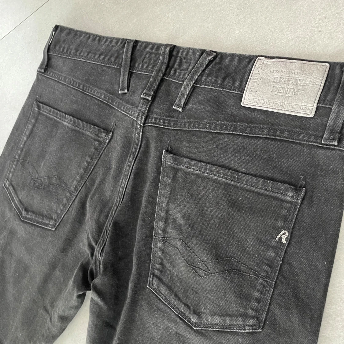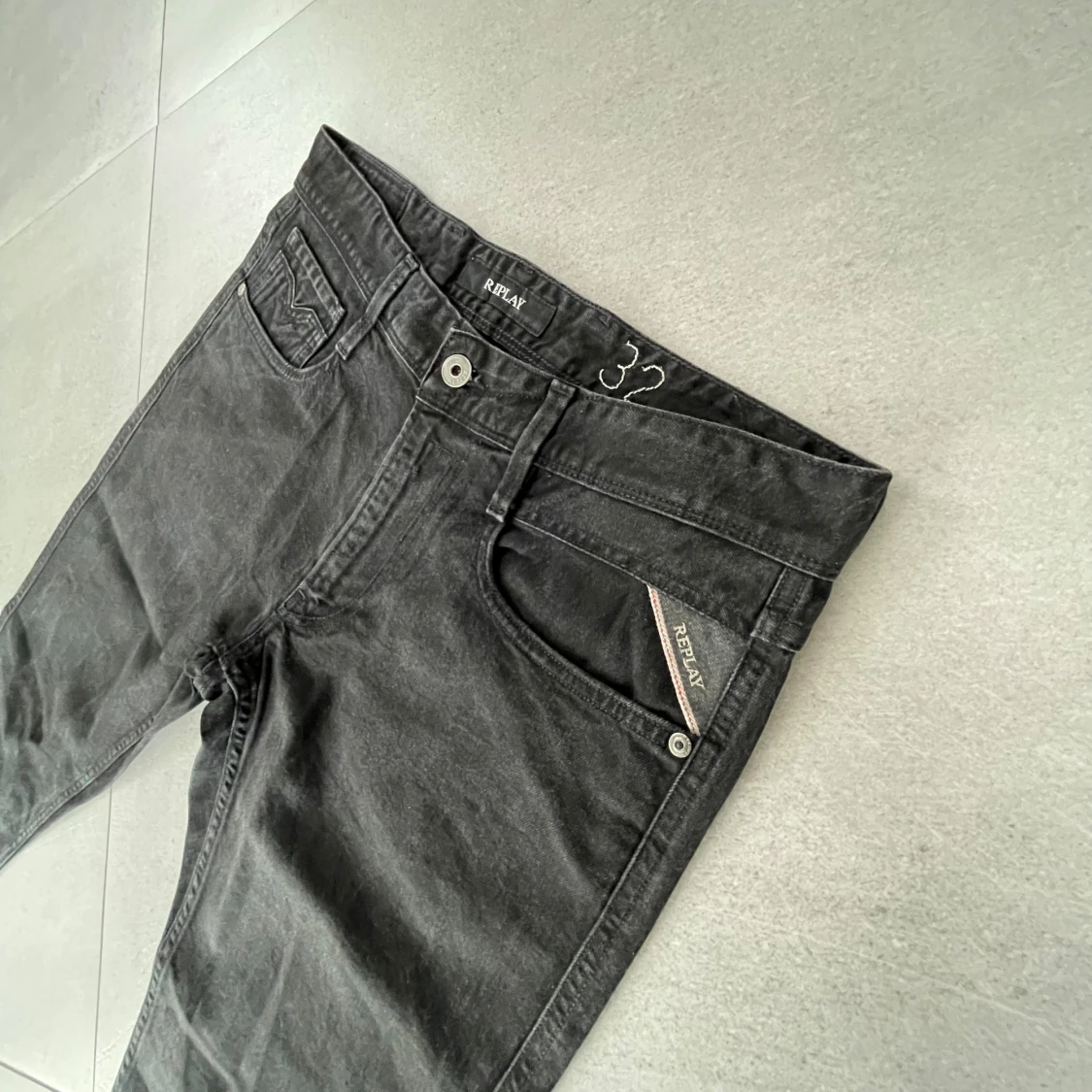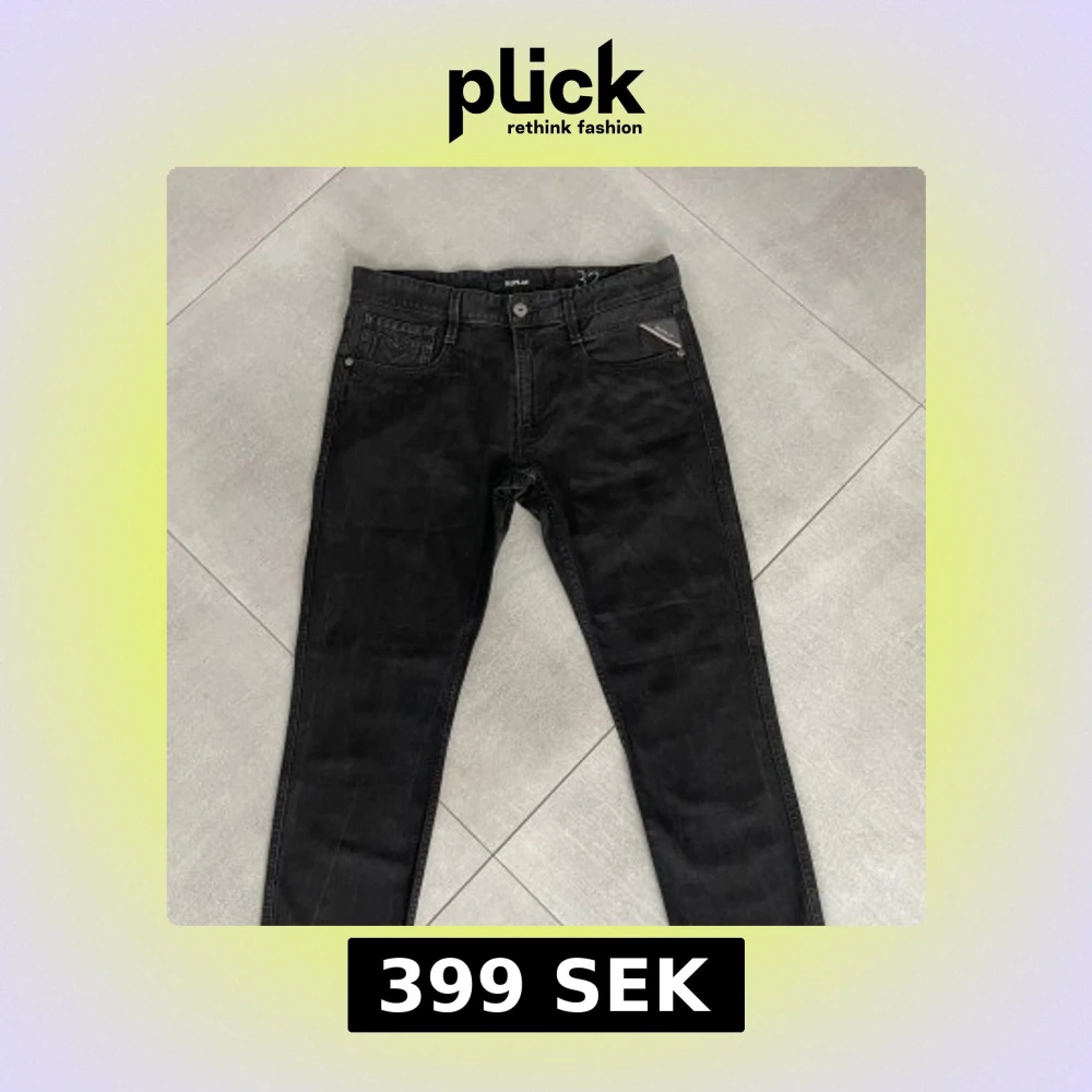 Feta svarta jeans från Replay. Mycket bra skick och inga tecken på användning. Storlek 32/34 men är nerkortade till ungefär 32/32. Killen på bilden är ca 185 och sitter bra ! MVH EM_RESELL