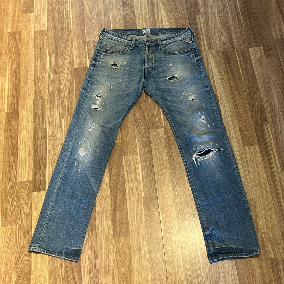 Ett par feta Replay jeans som är regular! Storleken är 32/34! De är i ett fint skick, med fina slitningar och lite hål! Skick 8/10! Kontakta mig för frågor/information eller prisdiskutering m.m!😊