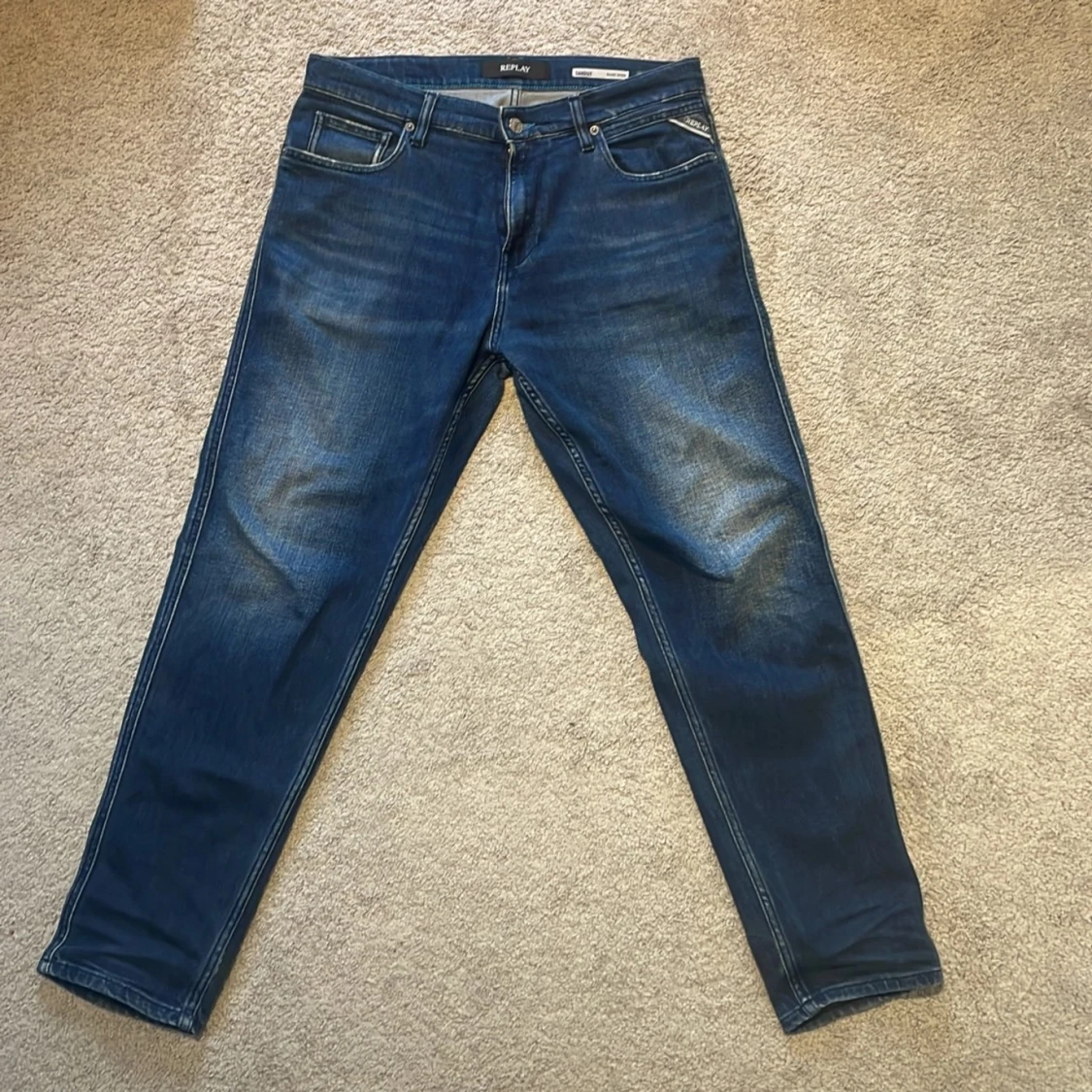 Blå replay jeans i ”Sandot” modellen.