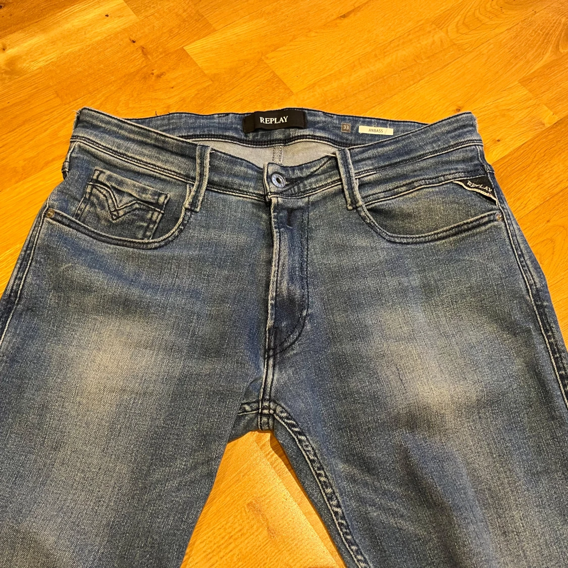 Snygga blå jeans från Replay i modellen anbass. Jeansen är i bra skick, inte använt dem så mycket. Dem är i storlek W33 L32.