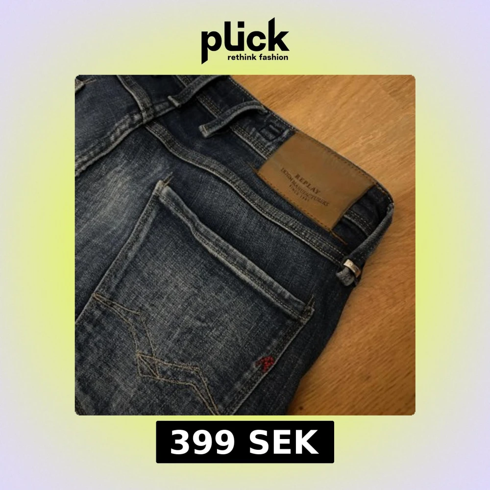 Säljer mina mörkblå replay jeans med riktigt snygg tvätt. Modellen är anbass och de sitter slim skulle jag säga. På byxorna står det 33 34 men de är uppsydda och generellt sätt lite mindre i midjan. De sitter perfekt för mig som har storlek 32 32! Nypris 1800!
