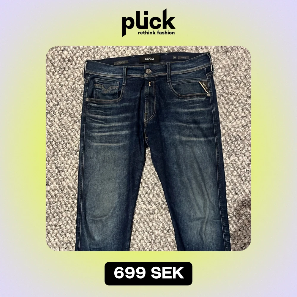 Säljer ett par snygga mörkblå jeans från Replay i modellen Anbass. De har en slim passform och är i mycket bra skick. Perfekta för både vardag och fest! Köpta på NK för 1699kr🙌🏾