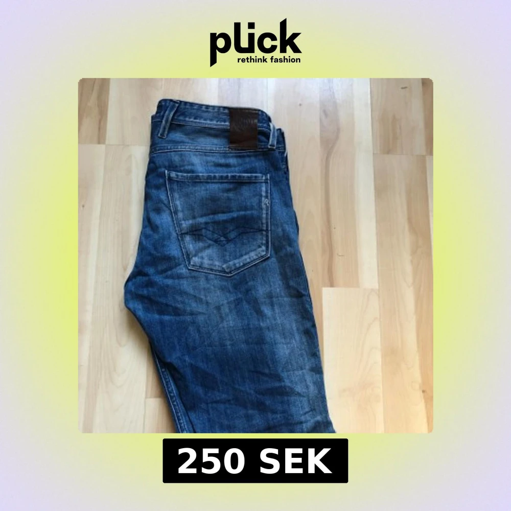 Snygga Replay Anbass jeans i klassisk blå tvätt med coola slitningar och raka ben. Jeansen har fem fickor, läderpatch bak och tydliga sömmar. Passar dig som gillar en modern och avslappnad stil. Materialet är slitstarkt jeans och midjan är normal.