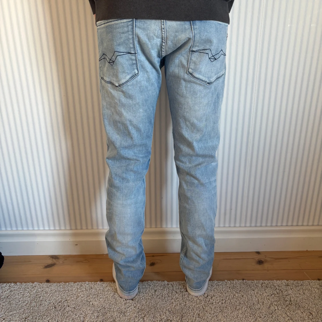 Säljer ett par Replay Anbass jeans i ljusblå tvätt. Klassisk femficksmodell med raka ben och snygga detaljer på bakfickorna. Jeansen har normal passform och är tillverkade i mjukt denimtyg som sitter skönt hela dagen. Storlek:32. Pris kan diskuteras, men ligger just nu på 399kr! Hör av dig vid frågor