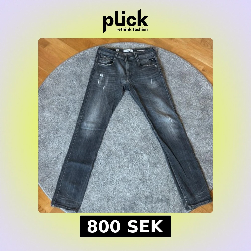 Snygga Replay Anbass jeans i grå tvätt med slitningar och slim fit passform. Klassisk femficksmodell med dragkedjegylf och coola detaljer. Perfekta för dig som gillar en modern och avslappnad stil. Tunna där bak vid fickorna, samt lappen där modellen står har gått av men är anbass.