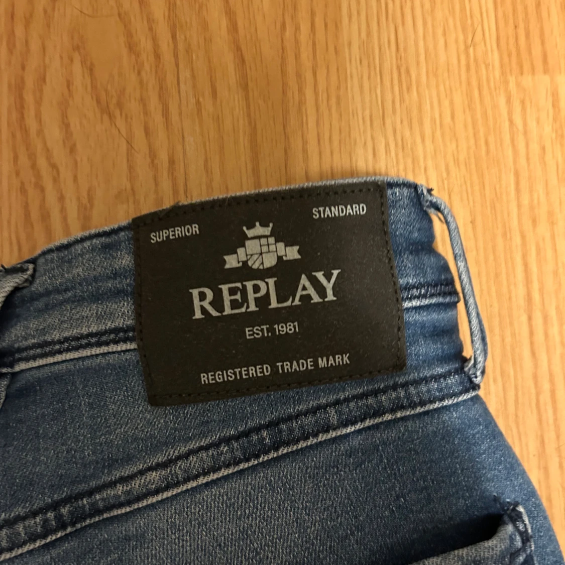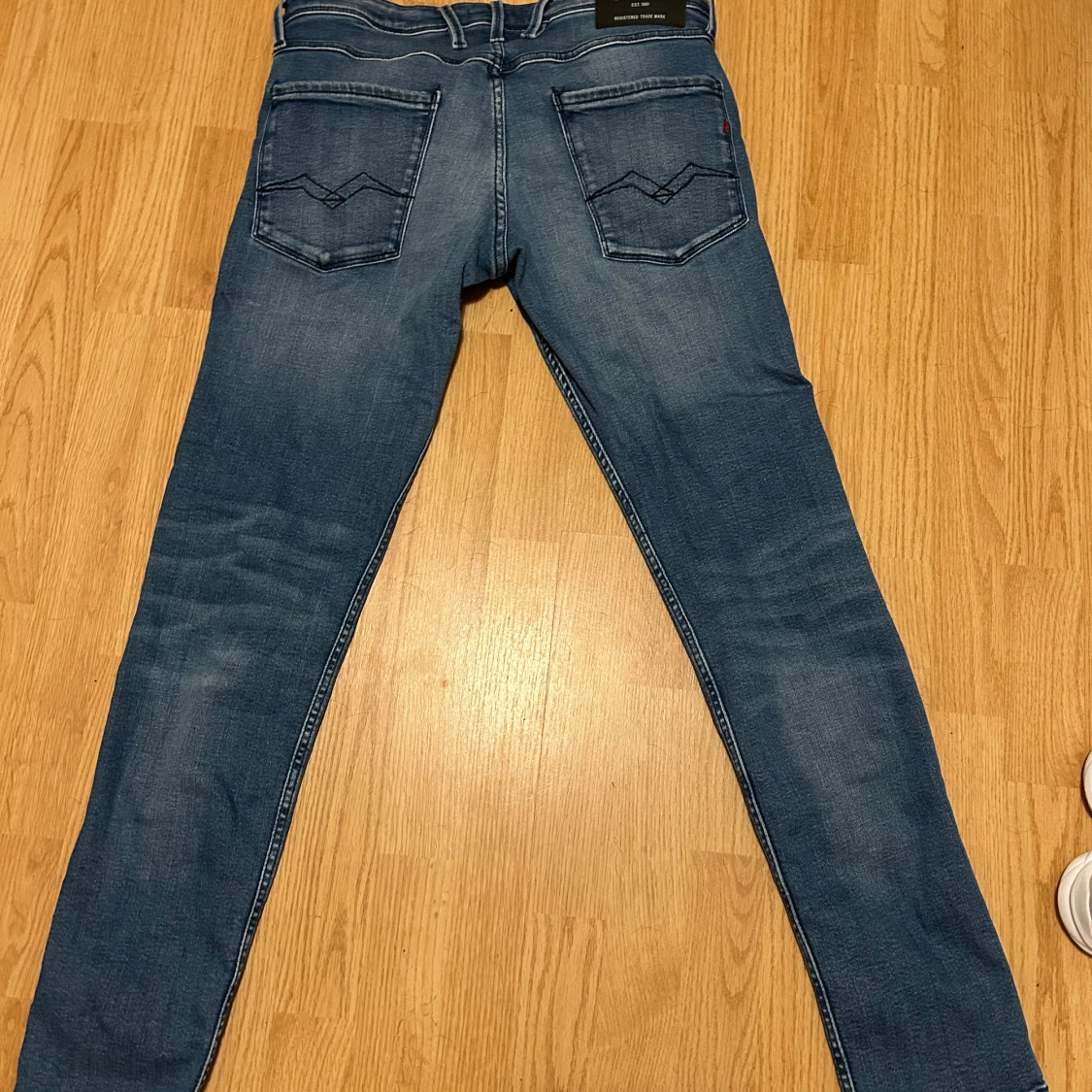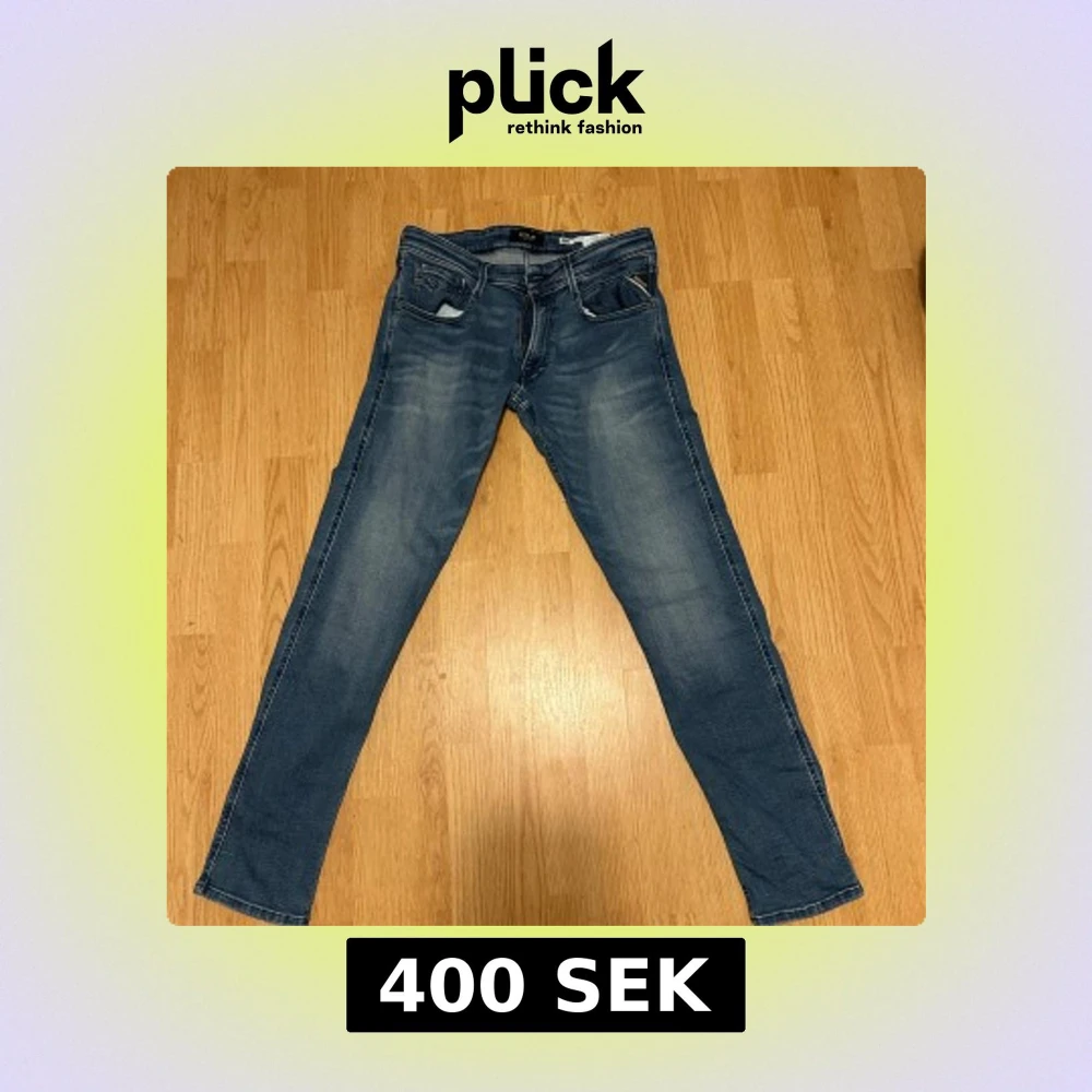 Snygga blå jeans från Replay, modell Anbass Slim Fit. Jeansen har klassisk femficksdesign, diskreta slitningar och smal passform. Tillverkade i stretchigt denim för extra komfort. Perfekta för dig som gillar en modern och stilren look.
