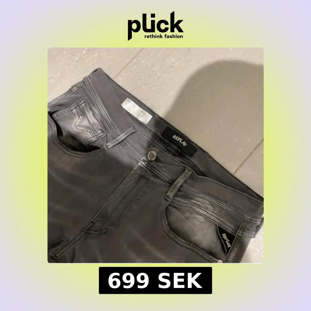 Snygga Replay Anbass jeans i en mörkgrå färg. Modellen har klassisk femficksdesign, . Jeansen är tillverkade i stretchigt bomullsmaterial för extra komfort och har Replay-logga på bakfickan. Hyperflex model