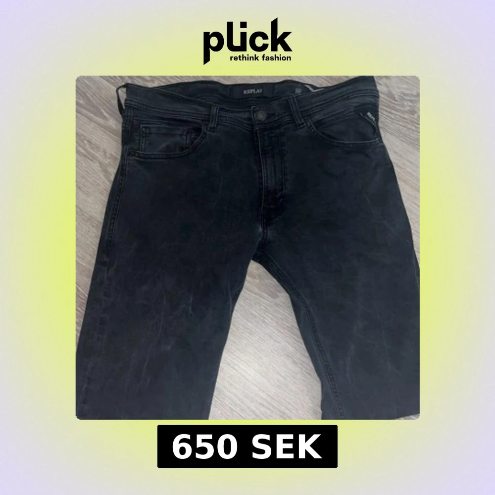 Säljer ett par svarta Replay i modellen Jondrill jeans i slim fit. Jeansen har klassisk femficksdesign, snygga svarta sömmar och Replay-logga på bakfickan. Modellen är smal och sitter tajt längs benen. Perfekta för dig som gillar en stilren och modern look. Kan sänka priset vid snabb affär. TAR EMOT BYTEN