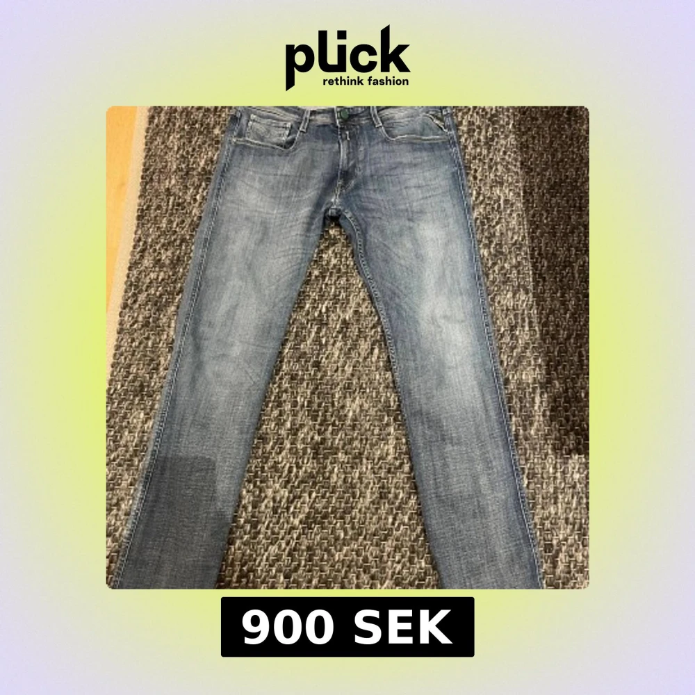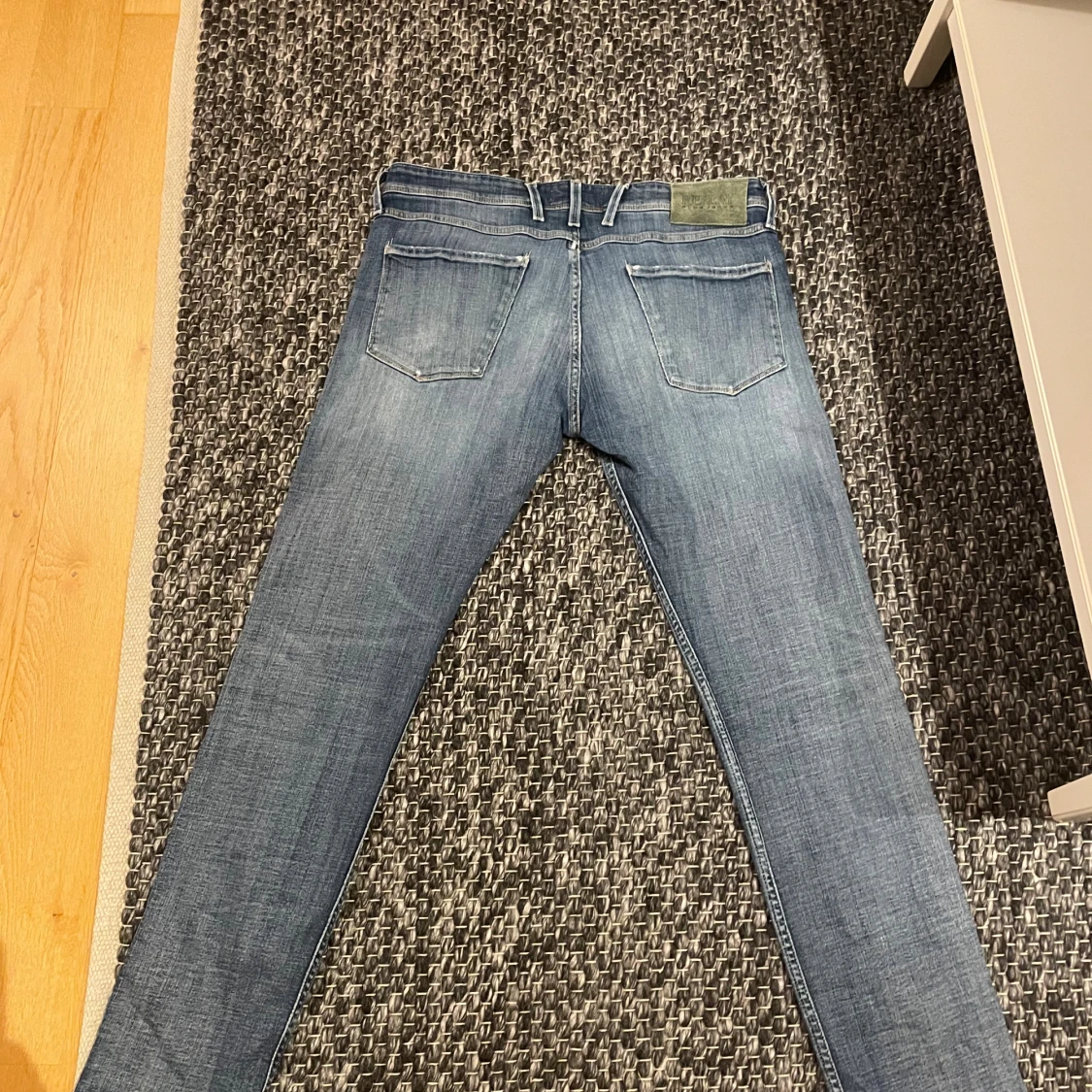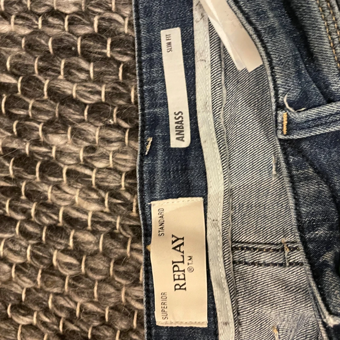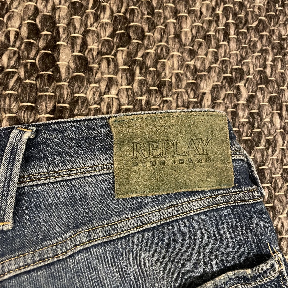Snygga blå Replay Anbass jeans i slim fit som är limited edition med den gröna Patchen med suede tyg. Jeansen har en lätt tvättad look och är tillverkade i mjukt denimtyg. Perfekta för dig som gillar en smalare passform och stilren design. Även sparsamt använda. Passar 32-34 i midjan och någon som är mellan 175-185. Nypris 1950kr!