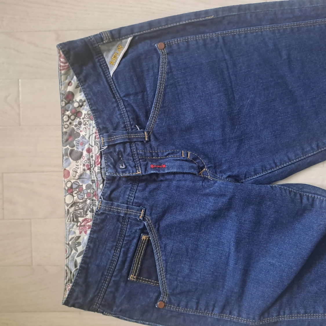 Replay blå jeans med blommigt foder