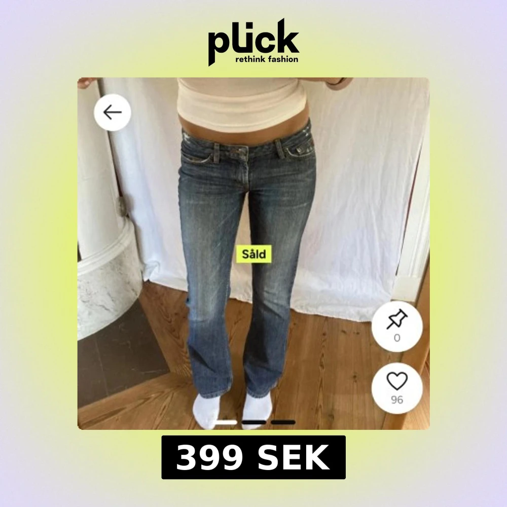 Lånade bilder! Köpte dessa byxor här på plick men dem var tyvärr för långa så säljer därför. Jätte fint skick. Midjemåttet är 37 cm rakt över. Innerbenslängden är 76 cm. Modellen är 170 cm! 💕