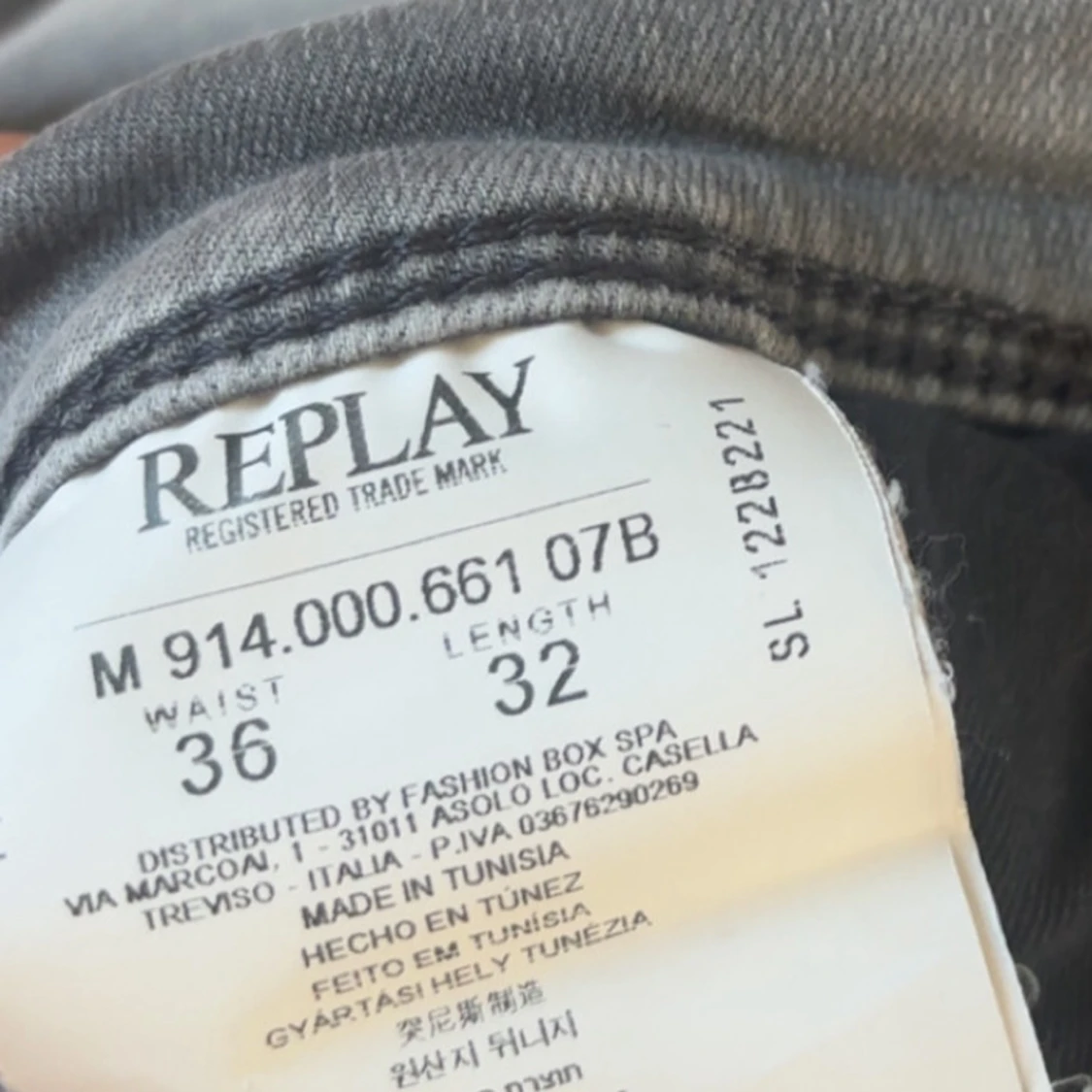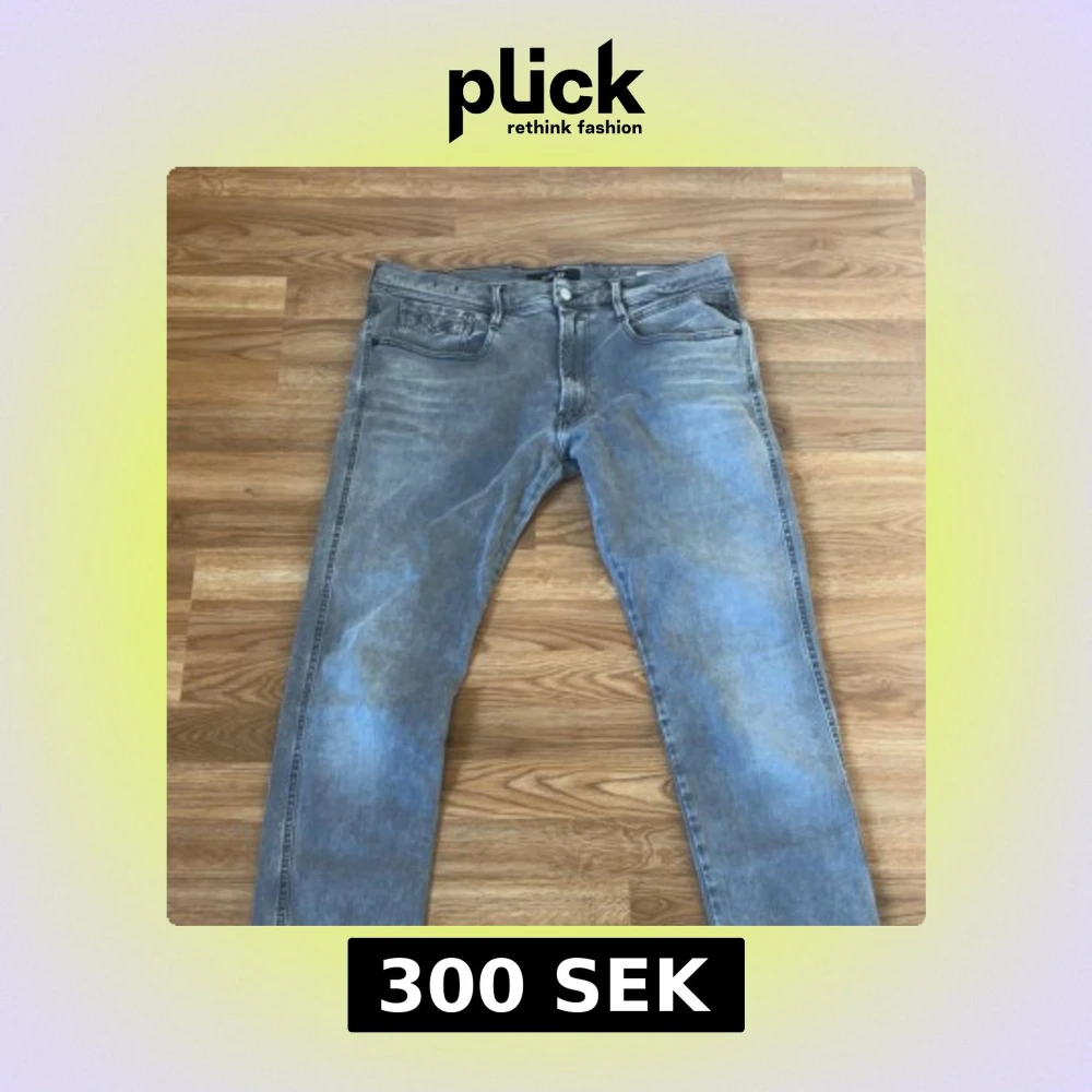 Snygga grå jeans från Replay med coola broderade detaljer på bakfickorna. Jeansen har klassisk femficksdesign, knappgylf och en tvättad look som ger en avslappnad vibe. Passar dig som gillar streetstyle och vill ha ett par jeans med unik touch.