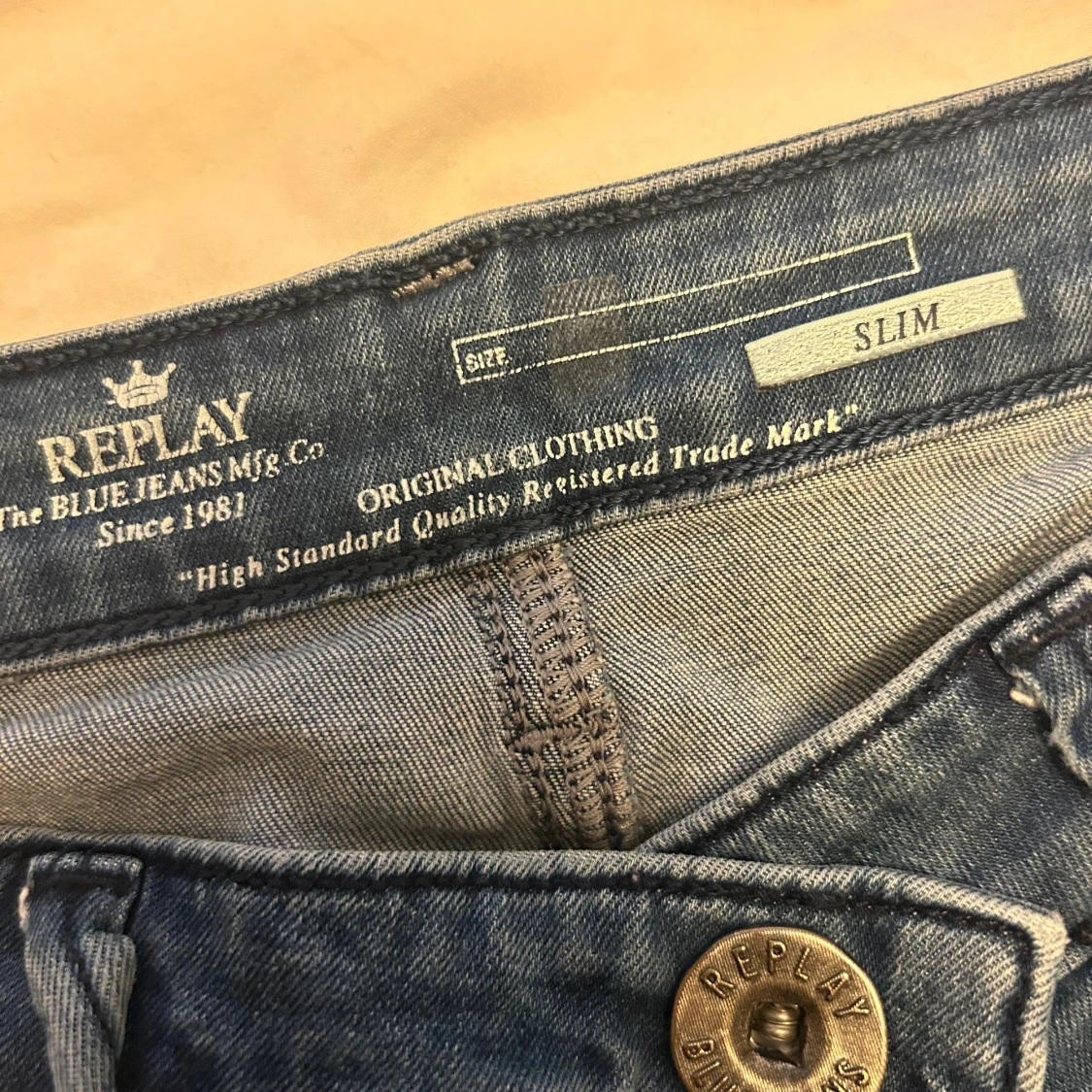 Snygga blå jeans från Replay i slim fit-modell. Jeansen har klassisk femficksdesign, dragkedja och knapp framtill samt Replay-logga vid fickan. Materialet är mjukt jeans-tyg med lätt tvättad look och snygga detaljer.