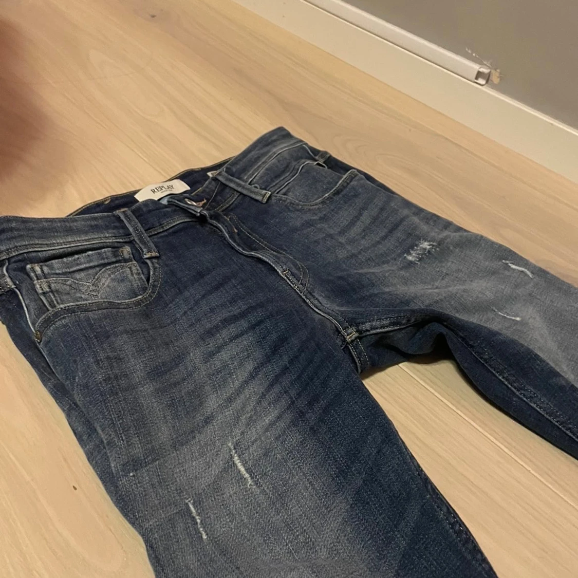 Tjenare! Säljer nu mina replay då jag ej använder dom. Dom är i bra skick och sitter tajt strl 29:30 men är insydda så dom sitter tajtare än originalet. Hör av er vid frågor Eller intresse! Svarar alltid inom kort!🤩