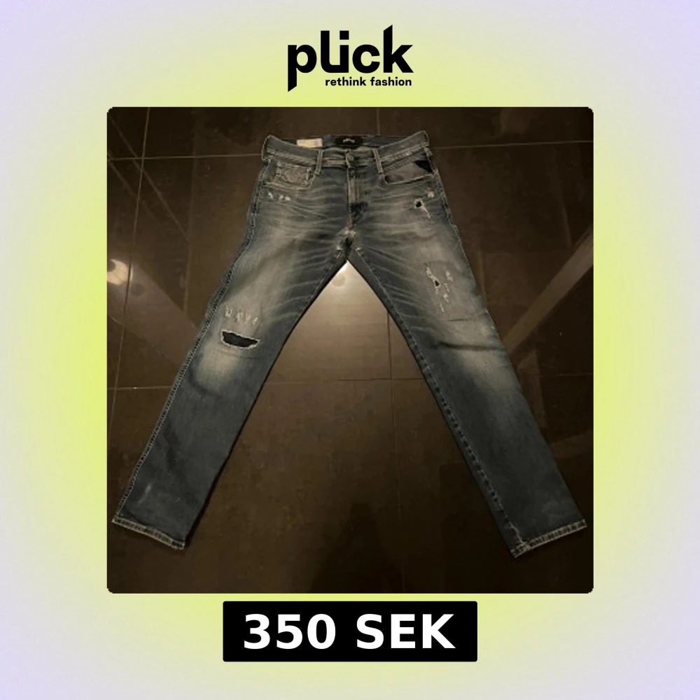 Säljer ett par Replay ambssas jeans i ett befintligt skick storleken är 32/30. Se skadan på sista bilden