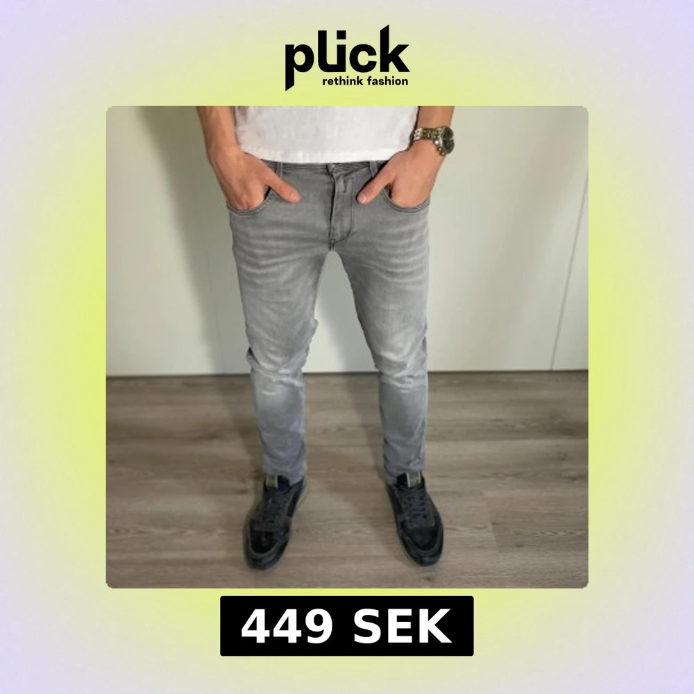 Ett par snygga gråa Replay Anbass i storlek 29. Jeansen är hyperflex så passar storlekar mellan 29-31. Hör gärna av dig vid frågor eller funderingar🙌