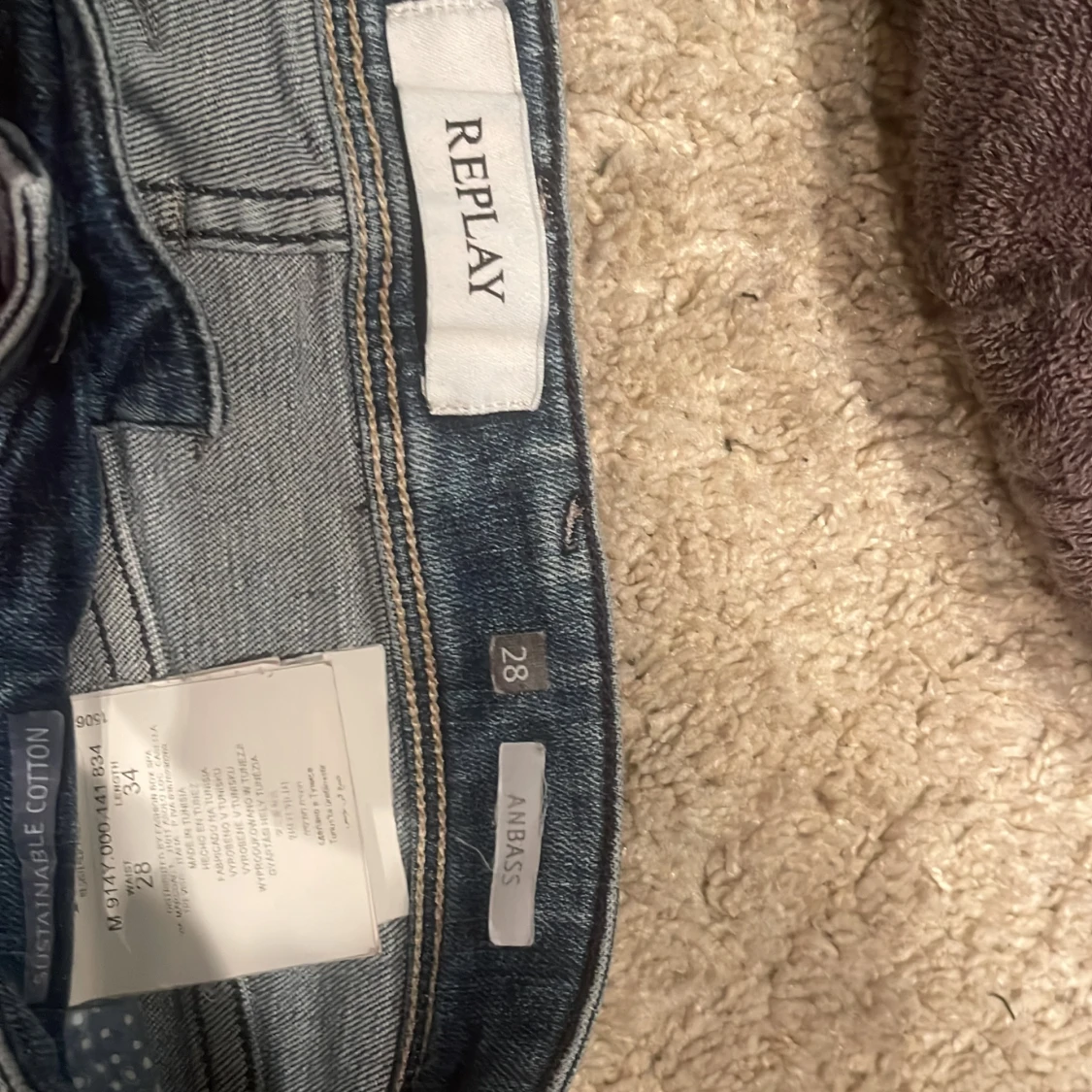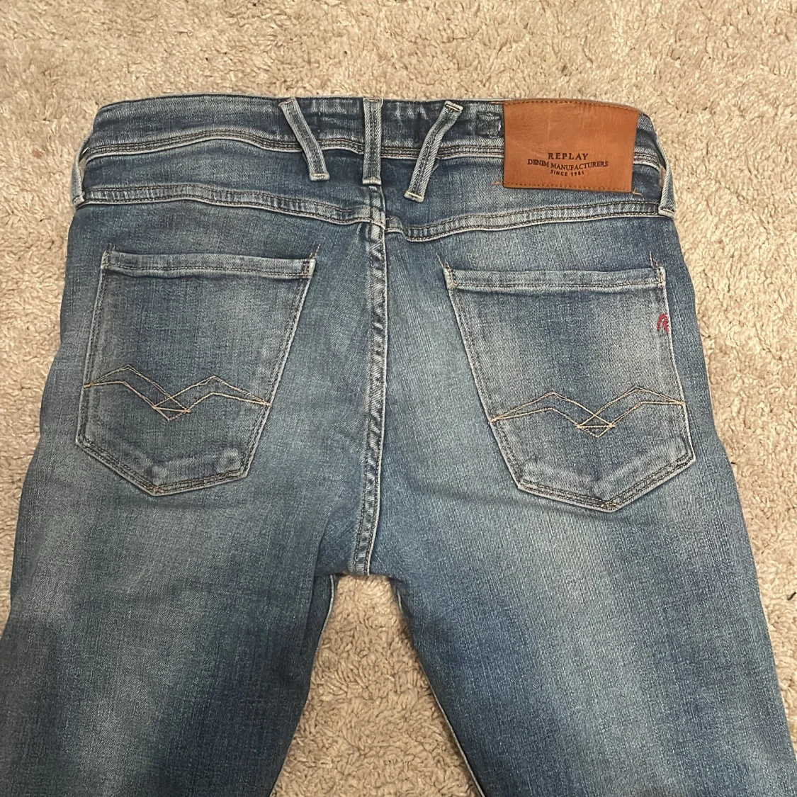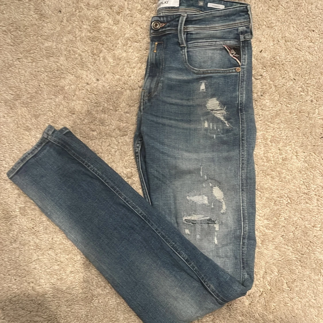 Tjenare, säljer ett par stilrena replay anbass i storlek 28/34. Jeansen har inte bara snygga slitningar, men är också i väldigt bra skick och är slim fit! Skriv om ni har frågor!