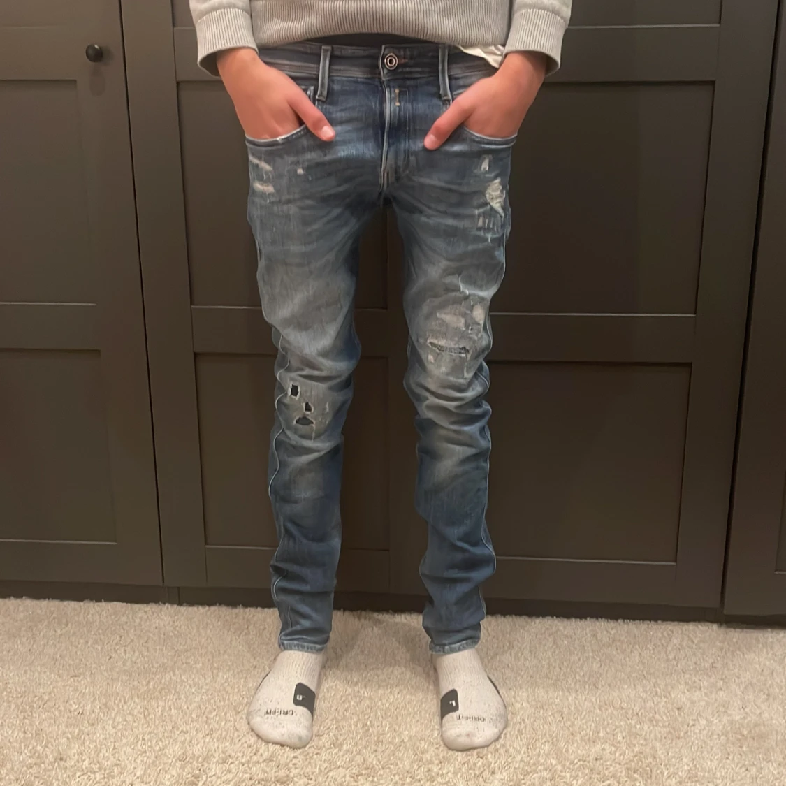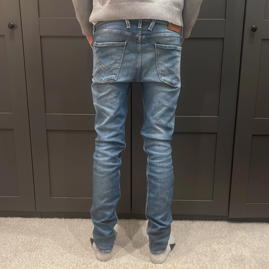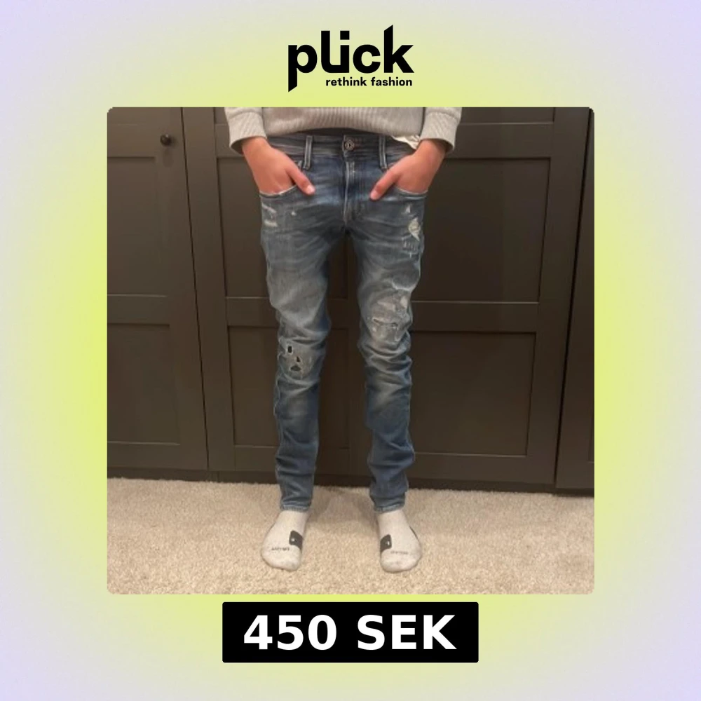 Tjenare, säljer ett par stilrena replay anbass i storlek 28/34. Jeansen har inte bara snygga slitningar, men är också i väldigt bra skick och är slim fit! Skriv om ni har frågor!