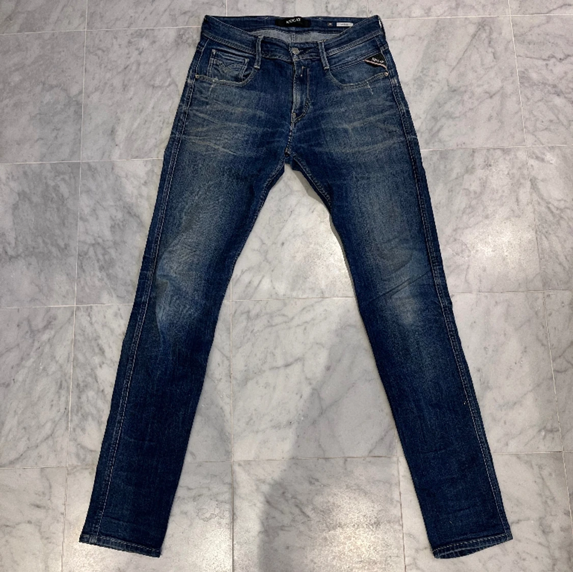 Säljer dessa skitsnygga blåa Replay byxor i modellen anbass. Han på bilden 180cm lång och väger 70kg. Skriv gärna vid frågor eller funderingar!