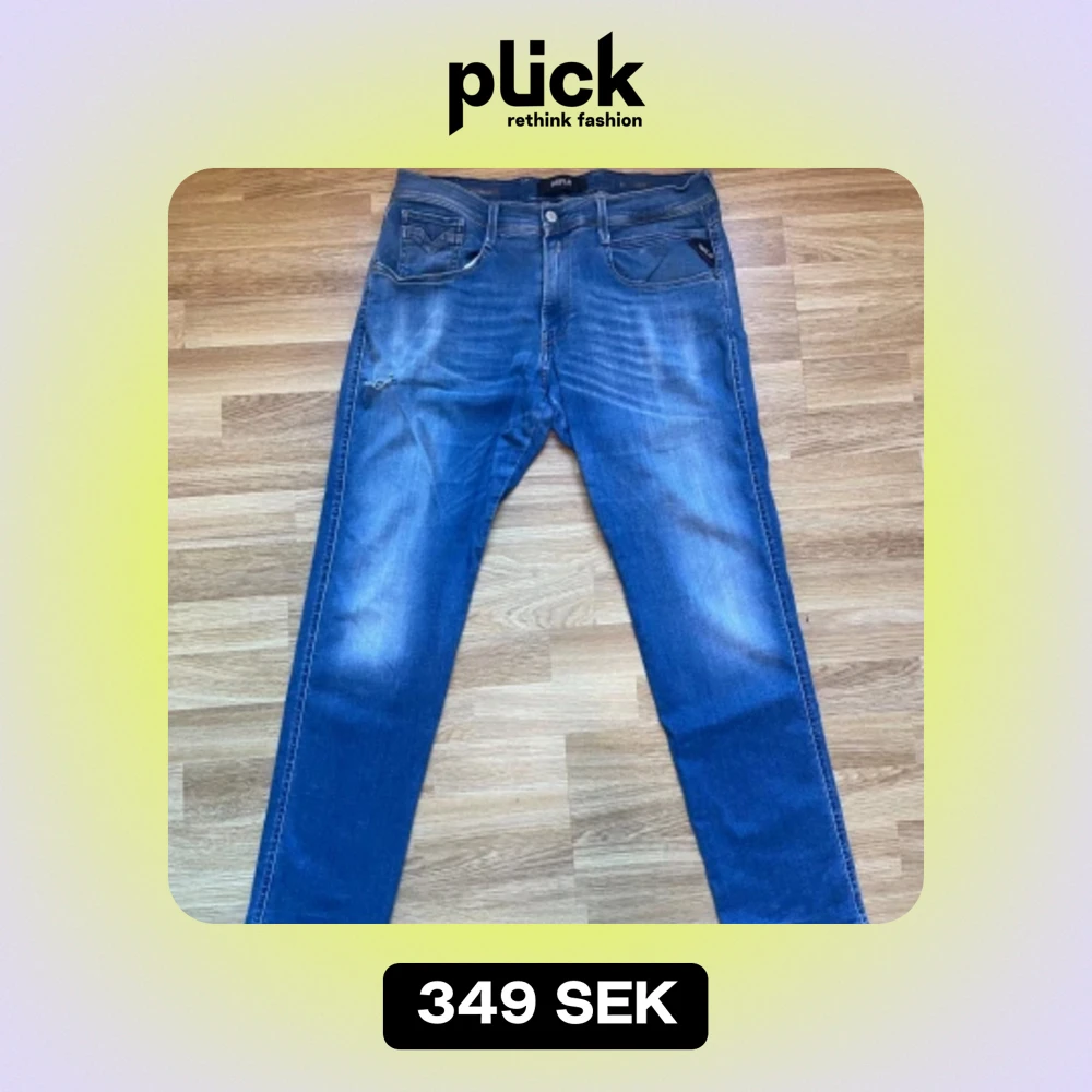 Tjena ! Nu säljer vi dessa jeans ifrån märket replay i modell anbass (slimfit) i storlek 33X30. Denna modell är hyperflex med strech för mer komfort. Det finns tecken på användning med 2 defekter. Nypris=1800, vårat pris=349. Skriv privat för frågor