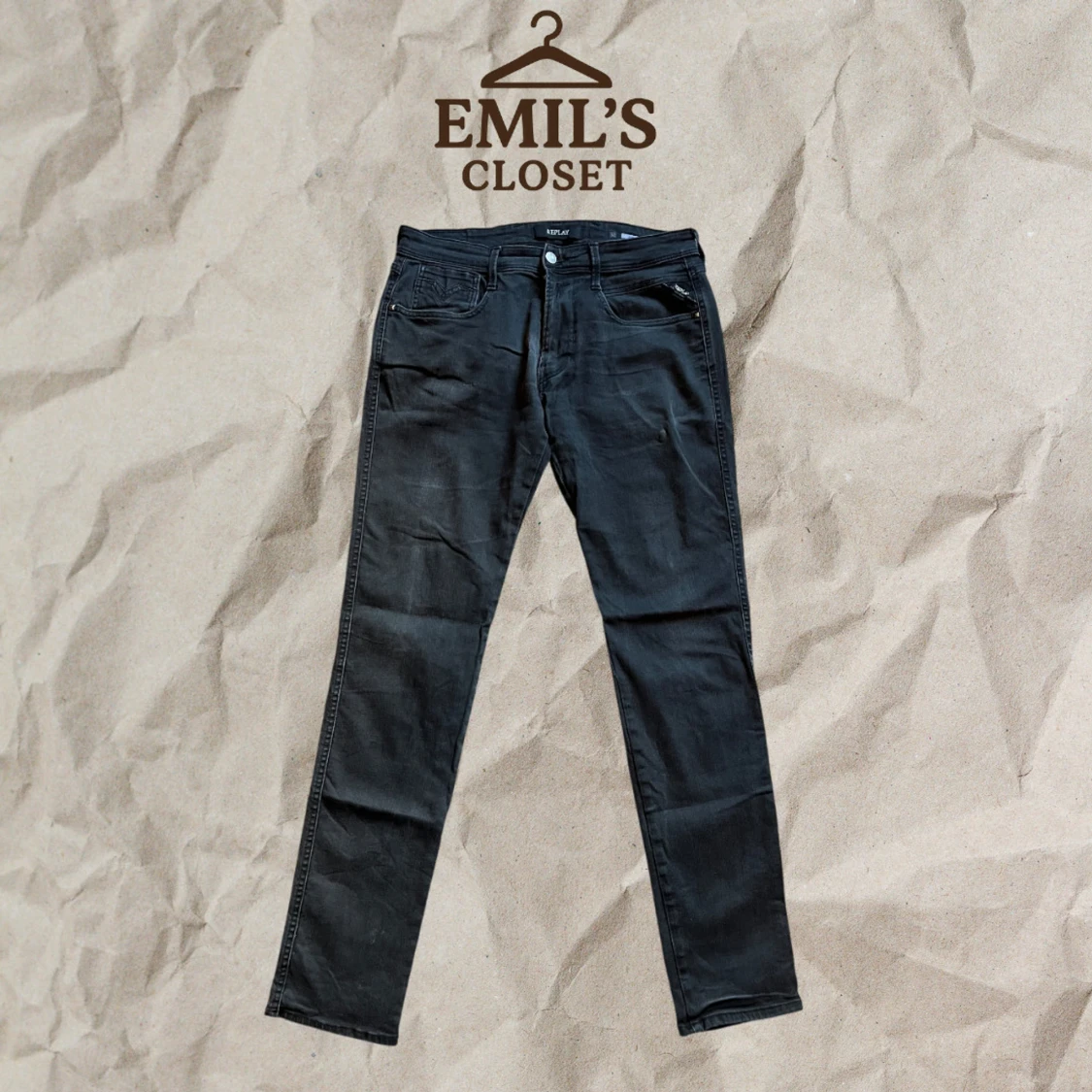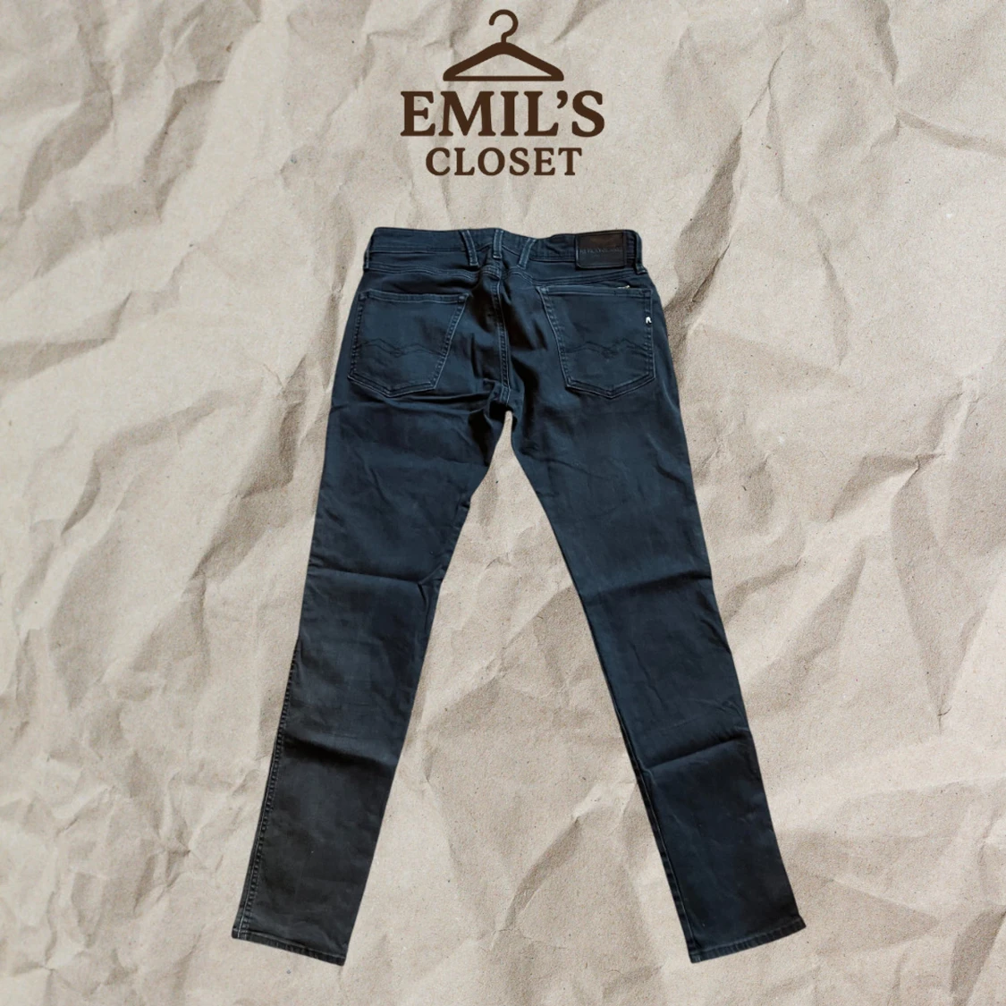 Svarta replay anbass i gott skick förutom att det är en fläck på vänster ben(syns knappt). Storlek W32 L34. Tveka inte på att höra av dig.