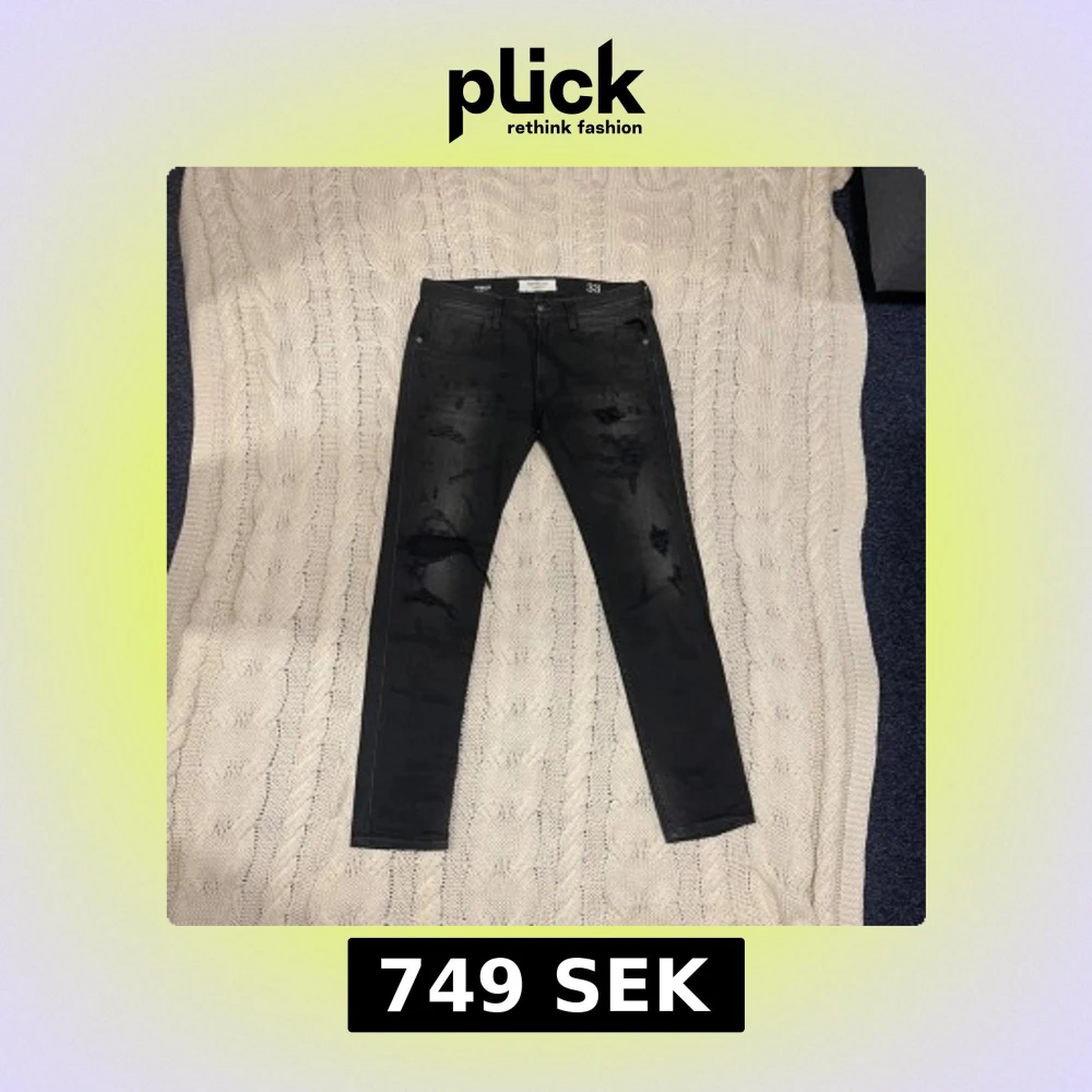 Säljer ett par sjukt feta jeans från Replay i modell Anbass. Storlek 33/32 men sitter som 32/32. Pris 749kr, men kan såklart diskuteras!!.