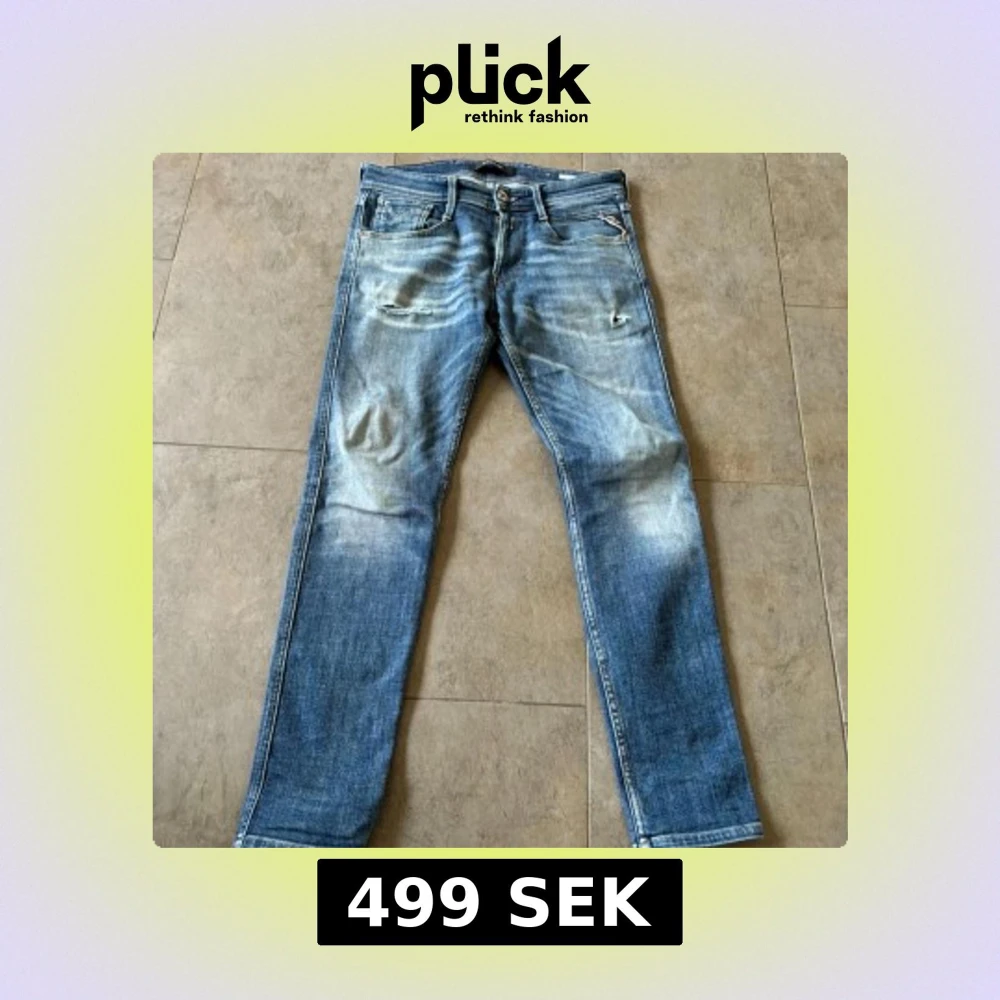 Ett par schyssta replay anbass jeans med lite slitningar och skön fade. Jeansen är i storlek W28L30 men passar mer som W30L31. Tveka inte på att höra av er om ni har frågor!