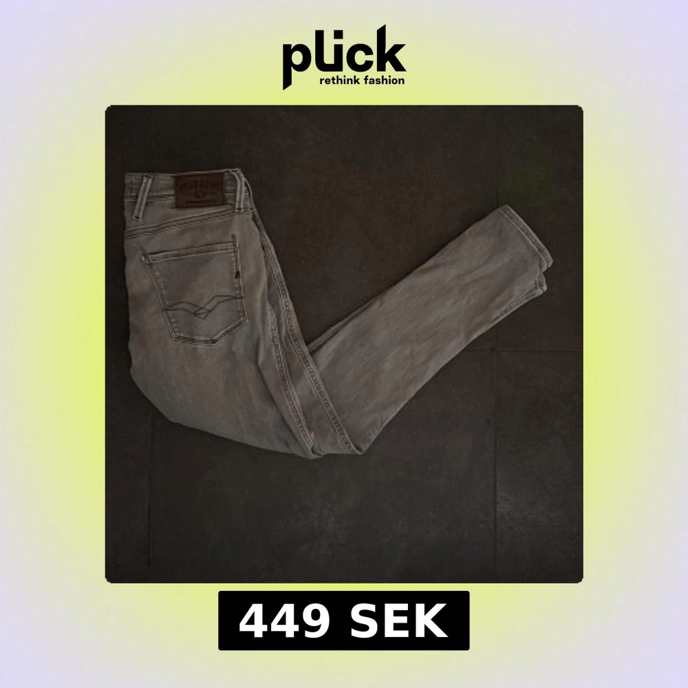 Snygga Replay Anbass jeans i en ljusgrå färg med klassisk femficksdesign och svarta detaljer på , tillverkade i mjukt bomullsmaterial med lite stretch för extra komfort. Nypris 1800kr