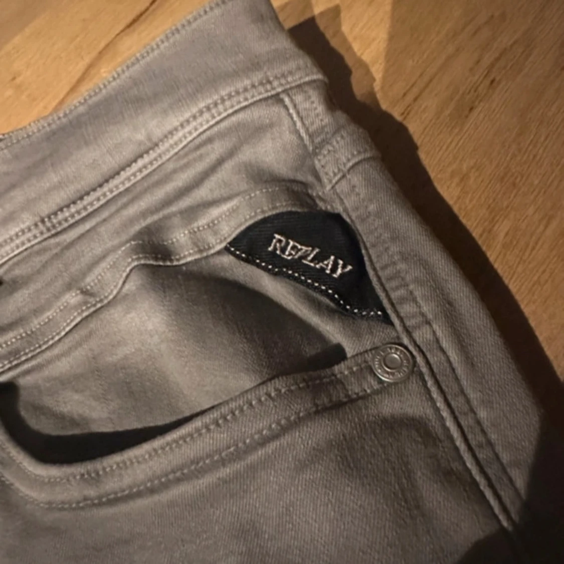 Säljer ett par gråa Replay Anbass jeans i slim fit. Snygg, modern passform med klassiska fickor och diskret Replay-logga vid fickan. Byxorna är i bomullsmix och har en stilren look som passar till det mesta.