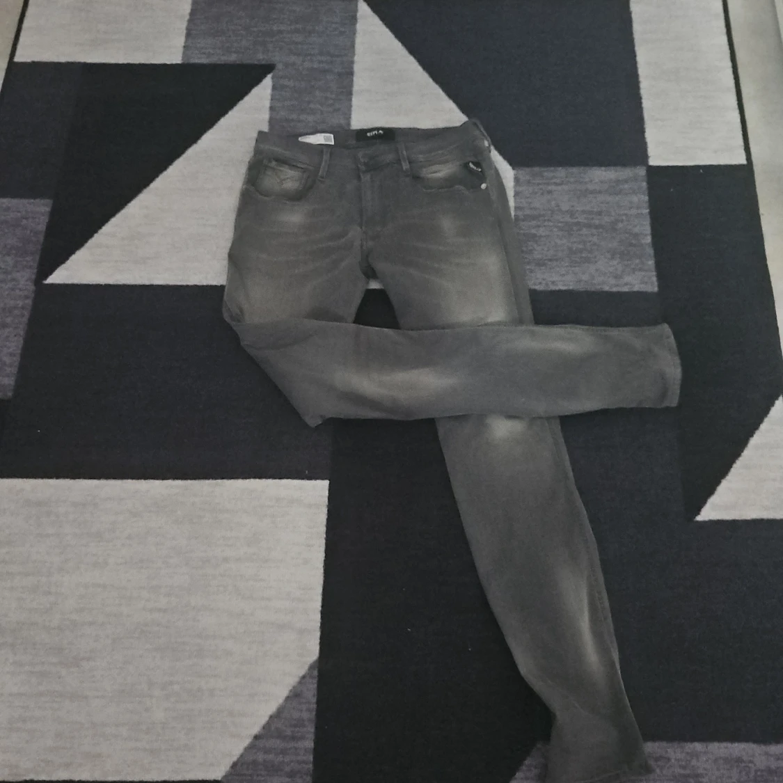 Säljer ett par Replay Anbass Hyperflex jeans i grått. Slim fit-modell med klassisk femficksdesign och snygga slitningar. Jeansen är stretchiga och sitter tajt men bekvämt. Perfekta för dig som gillar en modern och stilren look. Pris kan diskuteras!