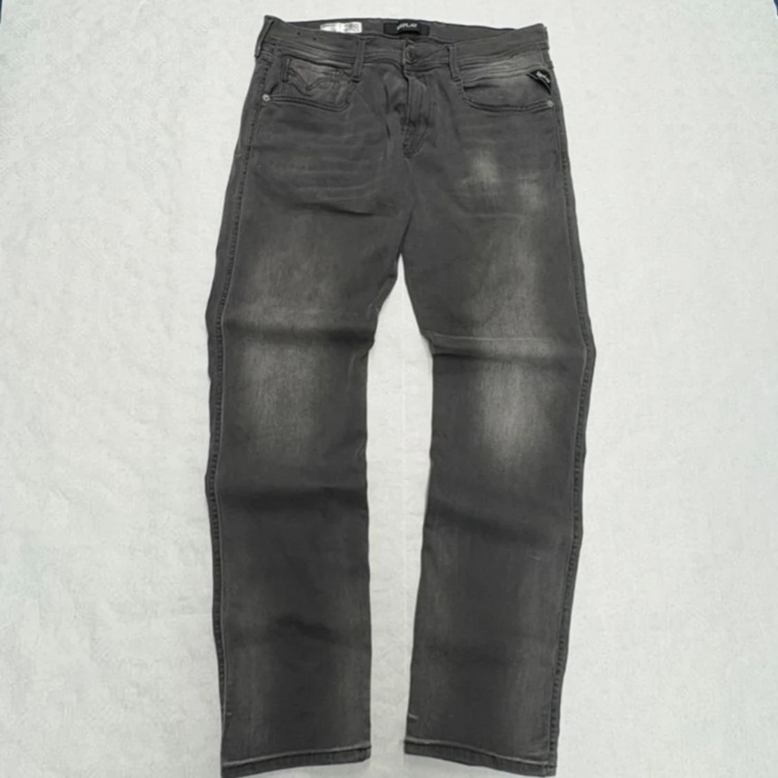 Snygga Replay Hyperflex jeans i tvättad grå färg med klassisk femficksdesign och raka ben. Jeansen har diskreta slitningar och logga på bakfickan samt läderpatch i midjan. Stretchigt material för extra komfort och stilren look.