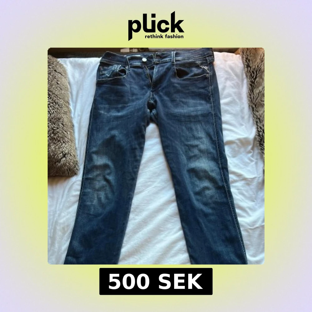 Mörkblå Replay Anbass Hyperflex jeans i slim fit med klassisk femficksdesign och snygga slitningar. Jeansen har en bekväm stretchig känsla och tydliga Replay-detaljer på bakfickan och patch i midjan.