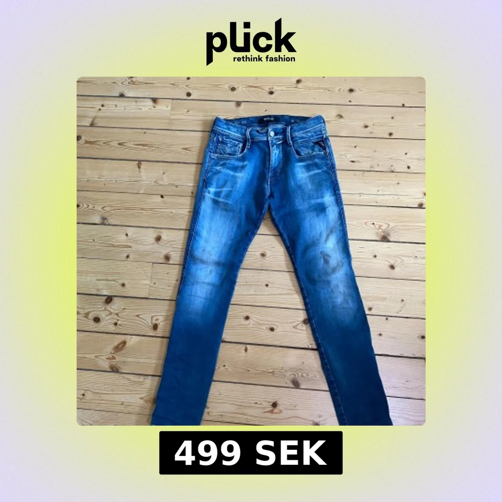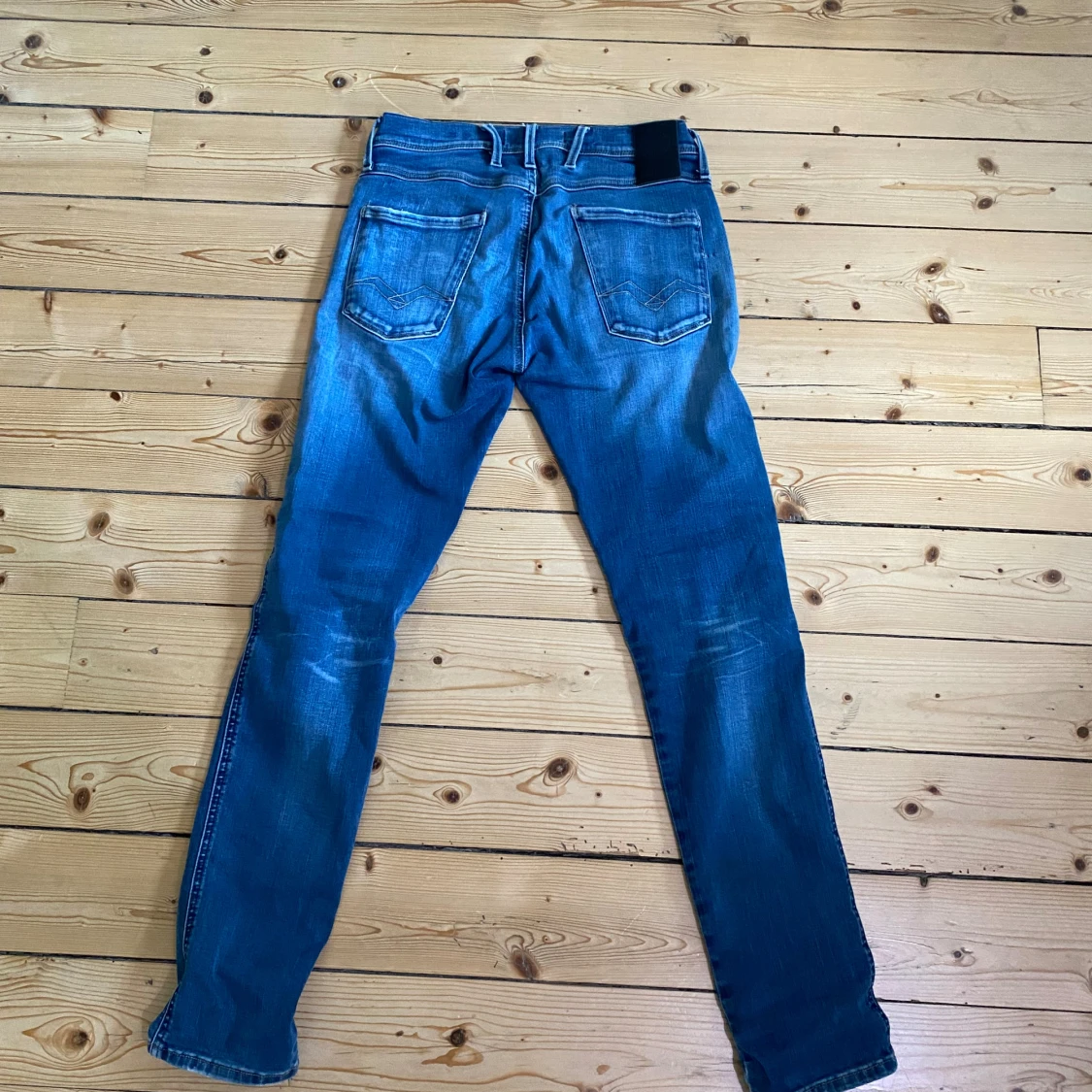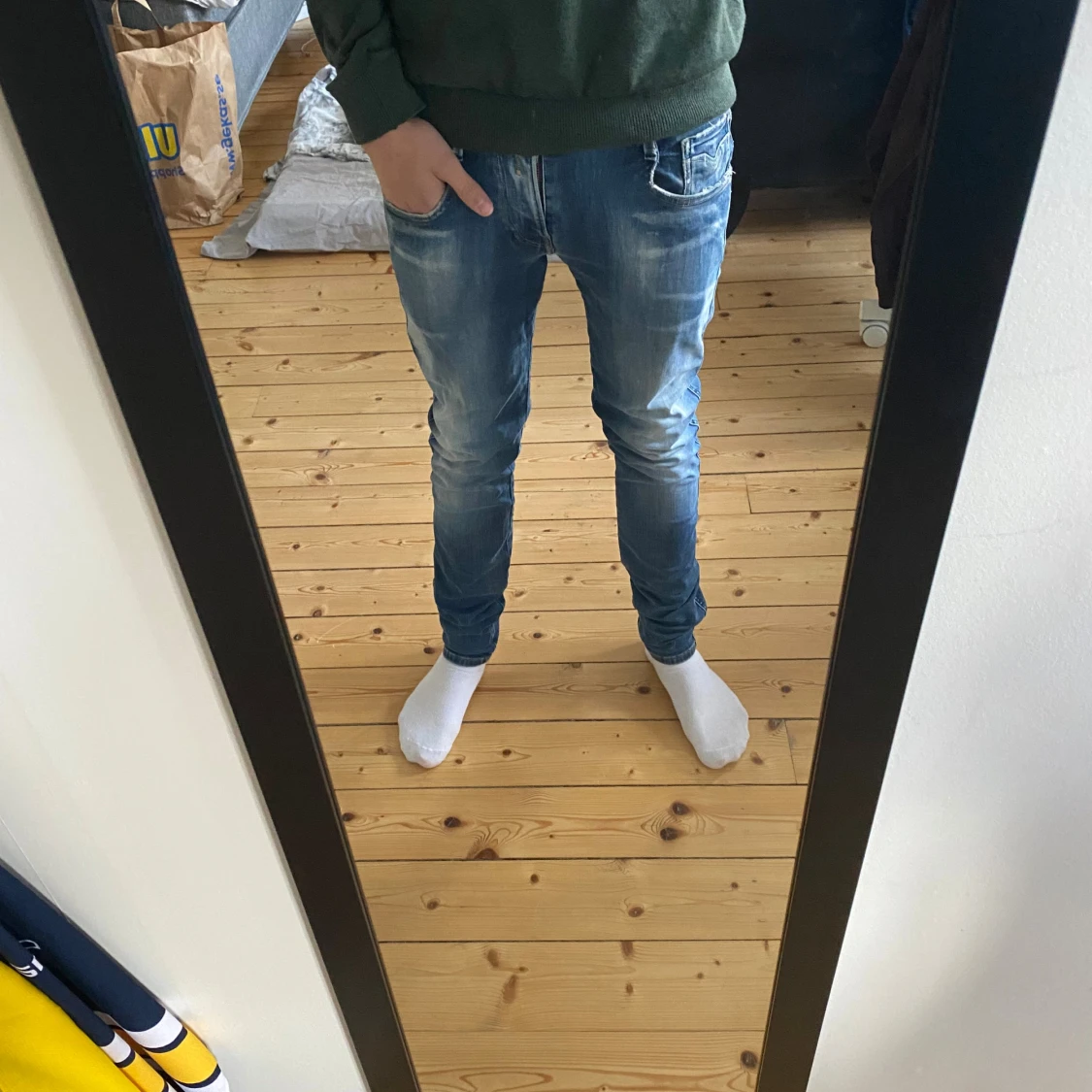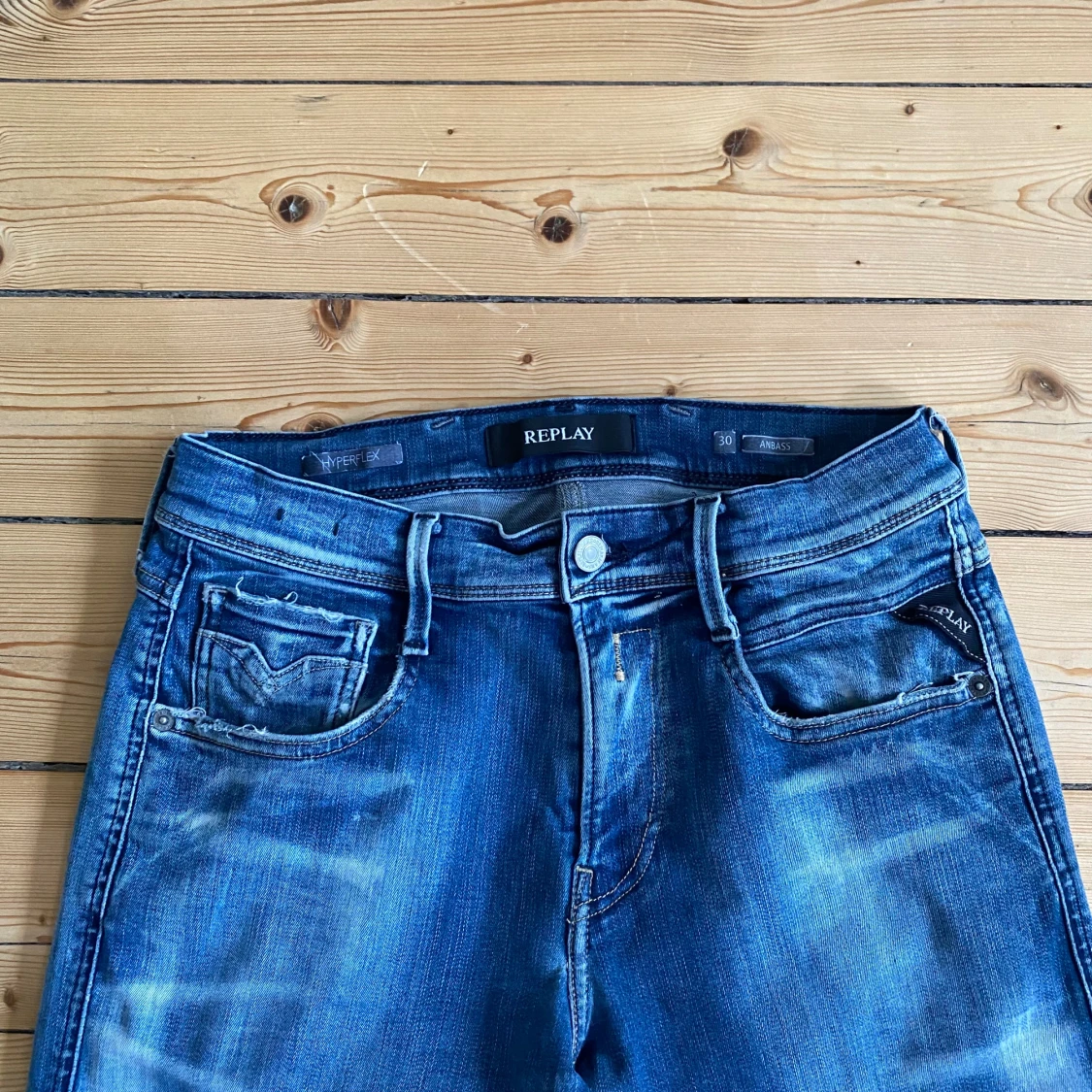 Säljer ett par Replay Anbass Hyperflex jeans i blå tvätt med snygga slitningar. Storlek 30 32. Jeansen har fem fickor, smal passform och klassisk midja. Stretchigt material som gör dem riktigt bekväma och följsamma. Perfekta inför hösten!🔥