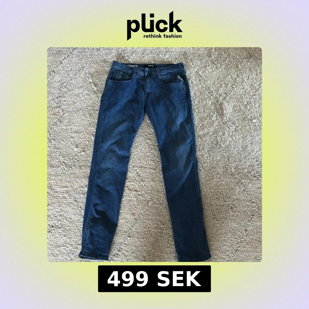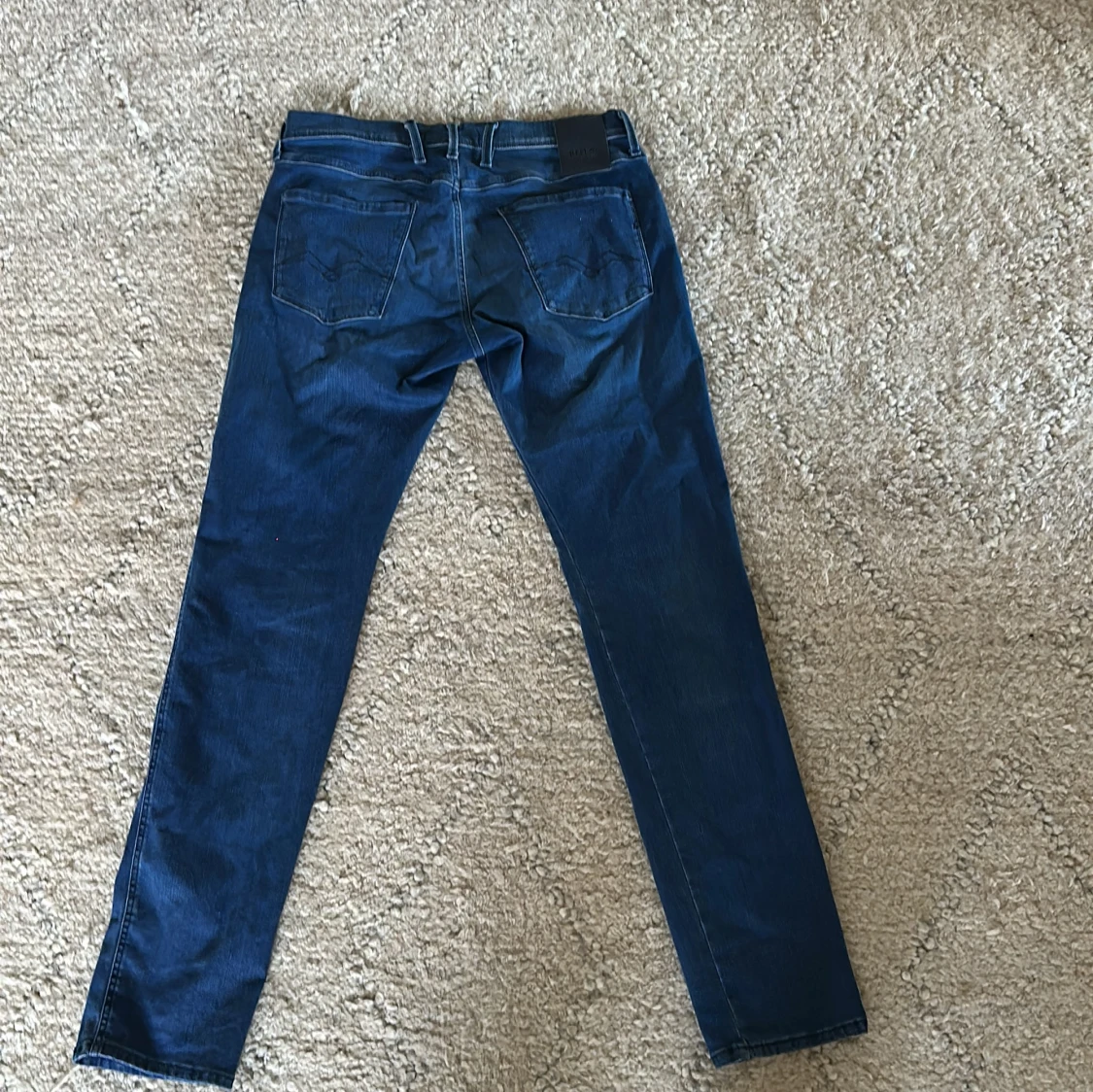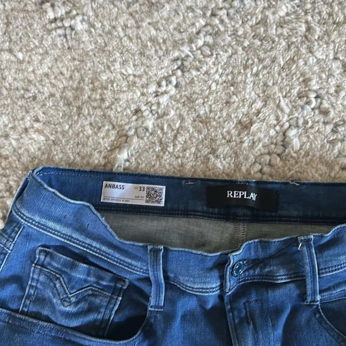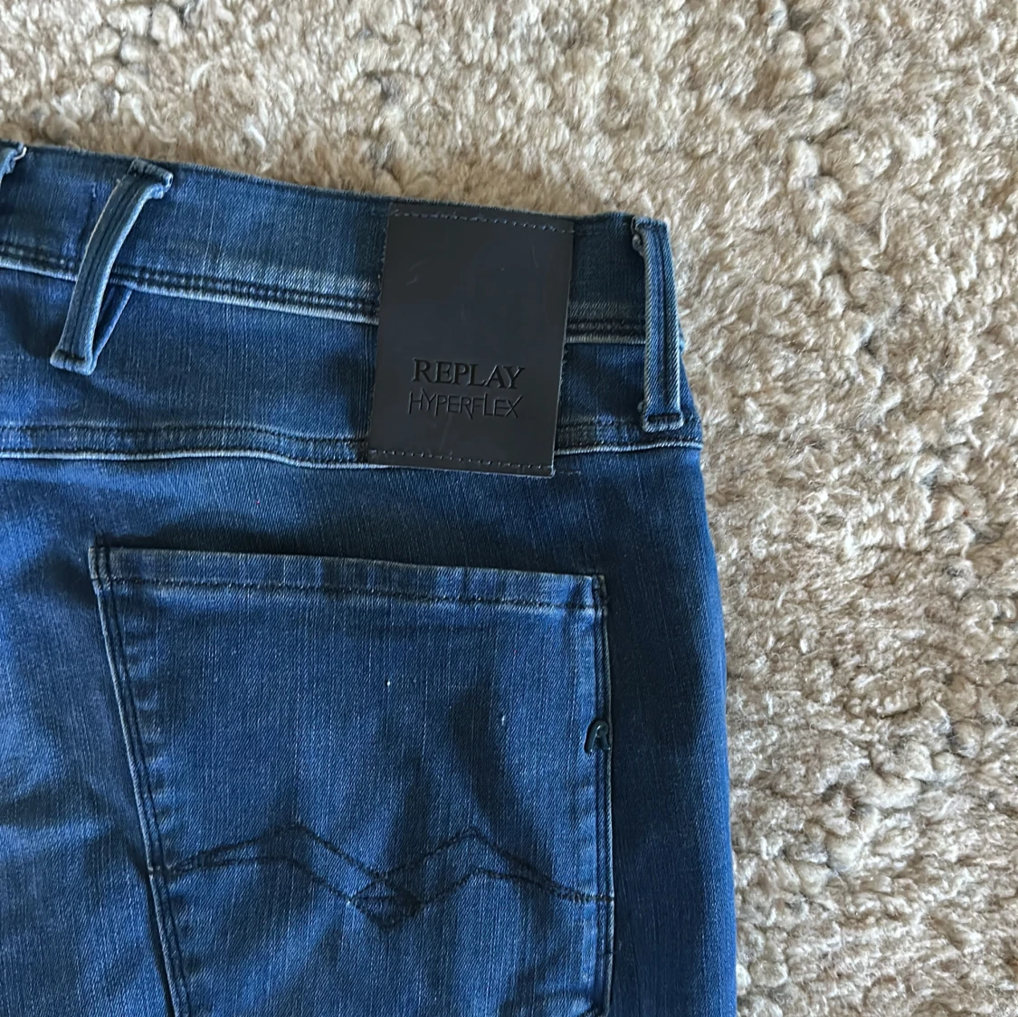 Säljer ett par blå Replay Anbass Hyperflex jeans med klassisk femficksdesign och snygga sömmar på bakfickorna. Jeansen har normal passform och är tillverkade i stretchigt jeansmaterial för extra komfort. Perfekta för dig som gillar stilrena och bekväma jeans. Storlek 33/34, as bra skick på dom, nypris 1200 mitt pris 499. Priset kan diskuteras