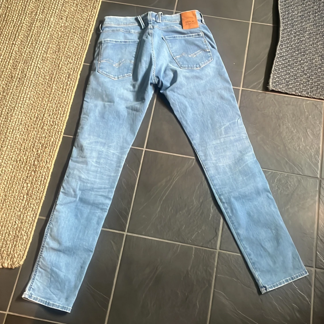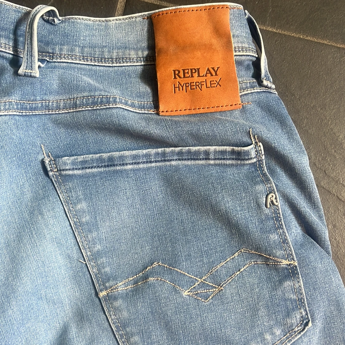 Säljer ett par Replay Hyperflex jeans i ljusblå tvätt. Modellen har skinny passform, klassiska fem fickor och snygga detaljer på bakfickorna. Jeansen är tillverkade i stretchigt denim för extra komfort och rörelsefrihet.