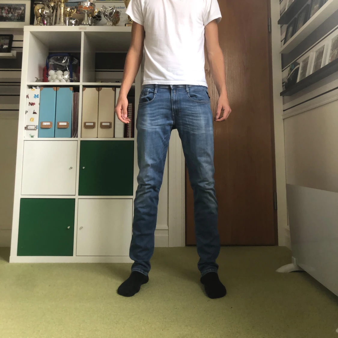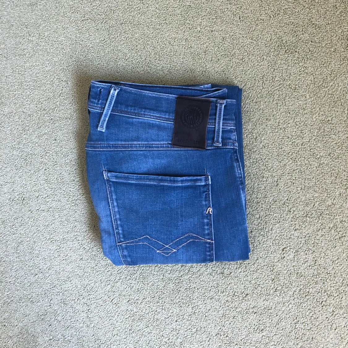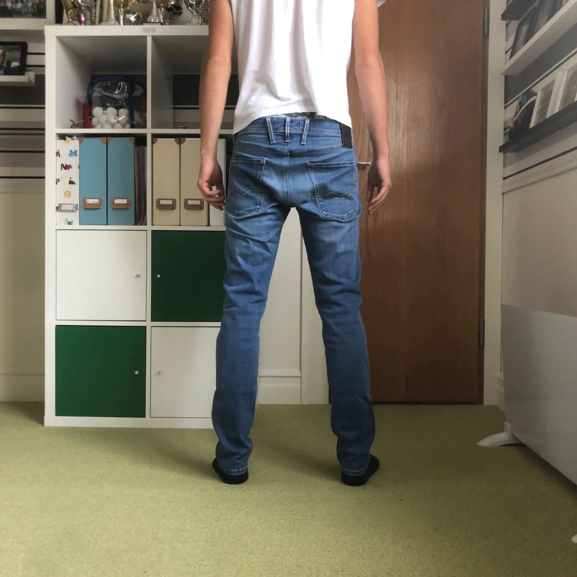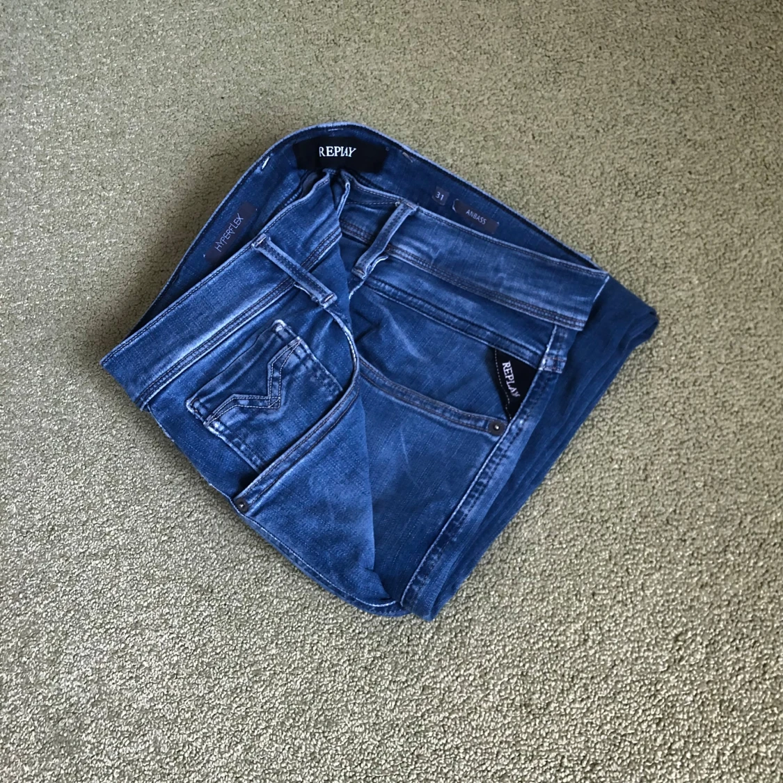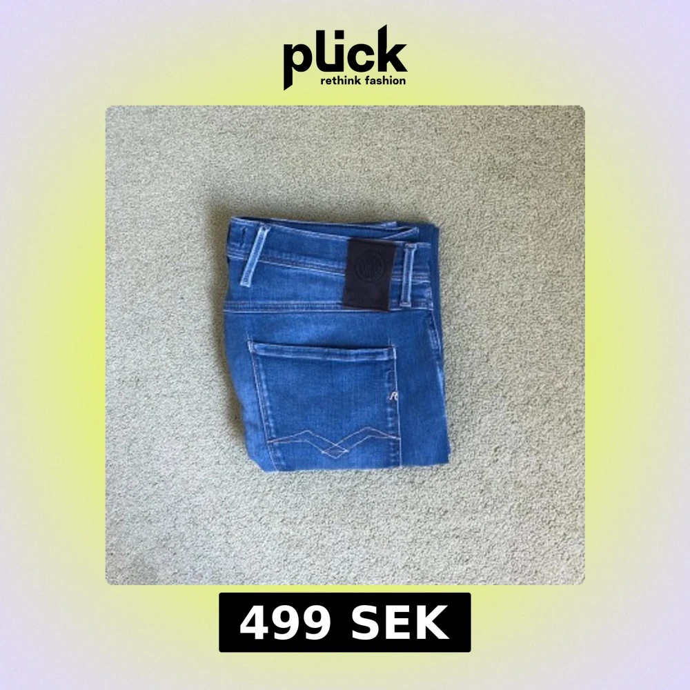 Säljer ett par blåa jeans från Replay, modell: Anbass Hyperflex (Slim fit), storlek: W31 L32, nypris: 1500kr, mitt pris: 399kr, riktigt sköna med härlig stretch, skriv vid funderingar!