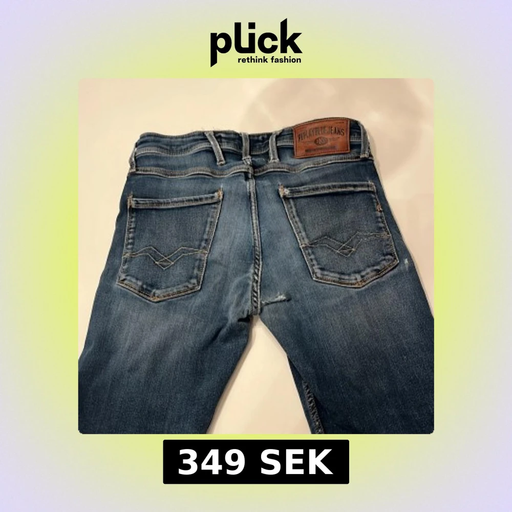 Säljer ett par blåa Replay Anbass Jeans. Jeansen är i en urtvättad blå färg. Skick 6,5/10 - Två små hål under gylfen, som enkelt kan lagas (se på bild 5) Lappen på insidan är också avklippt. (Därför det låga priset) Annars är jeansen i toppform. Köpta för typ 1200kr, På Nk i Stockholm, - Mitt pris 349kr. Hör av er vid frågor eller funderingar.