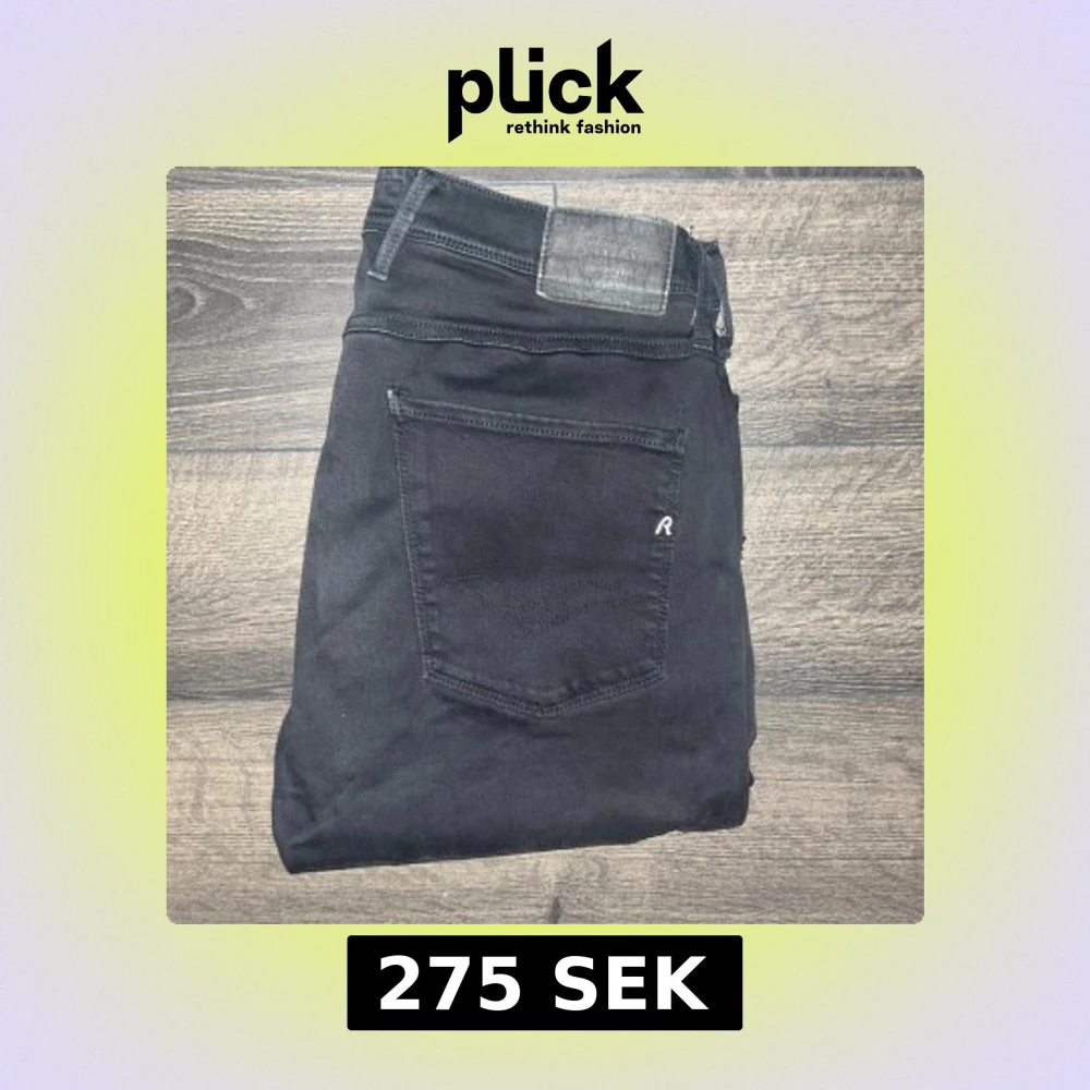 Svarta Replay Anbass jeans med klassisk femficksdesign och diskret logga på bakfickan. Slimmad passform med raka ben och snyggt svart tyg. Midja 42cm, längd 110cm. JAG SKICKAR INGA FLER BILDER PÅ NÄR JAG BÄR JEANSEN:) s2