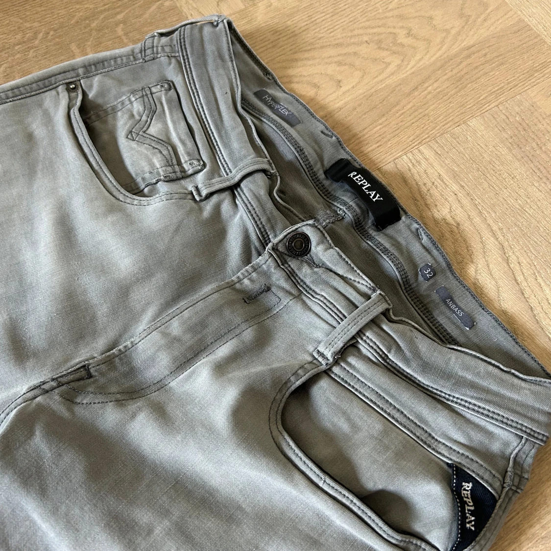 Säljer nu dessa feta replay Anbass jeans i storlek 32/32. De är i fint skick! Hör av dig om du har funderingar