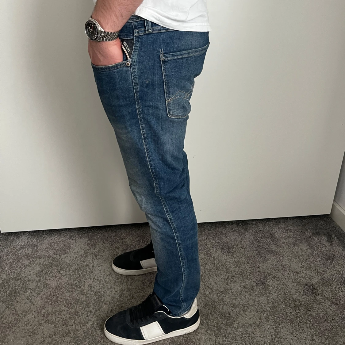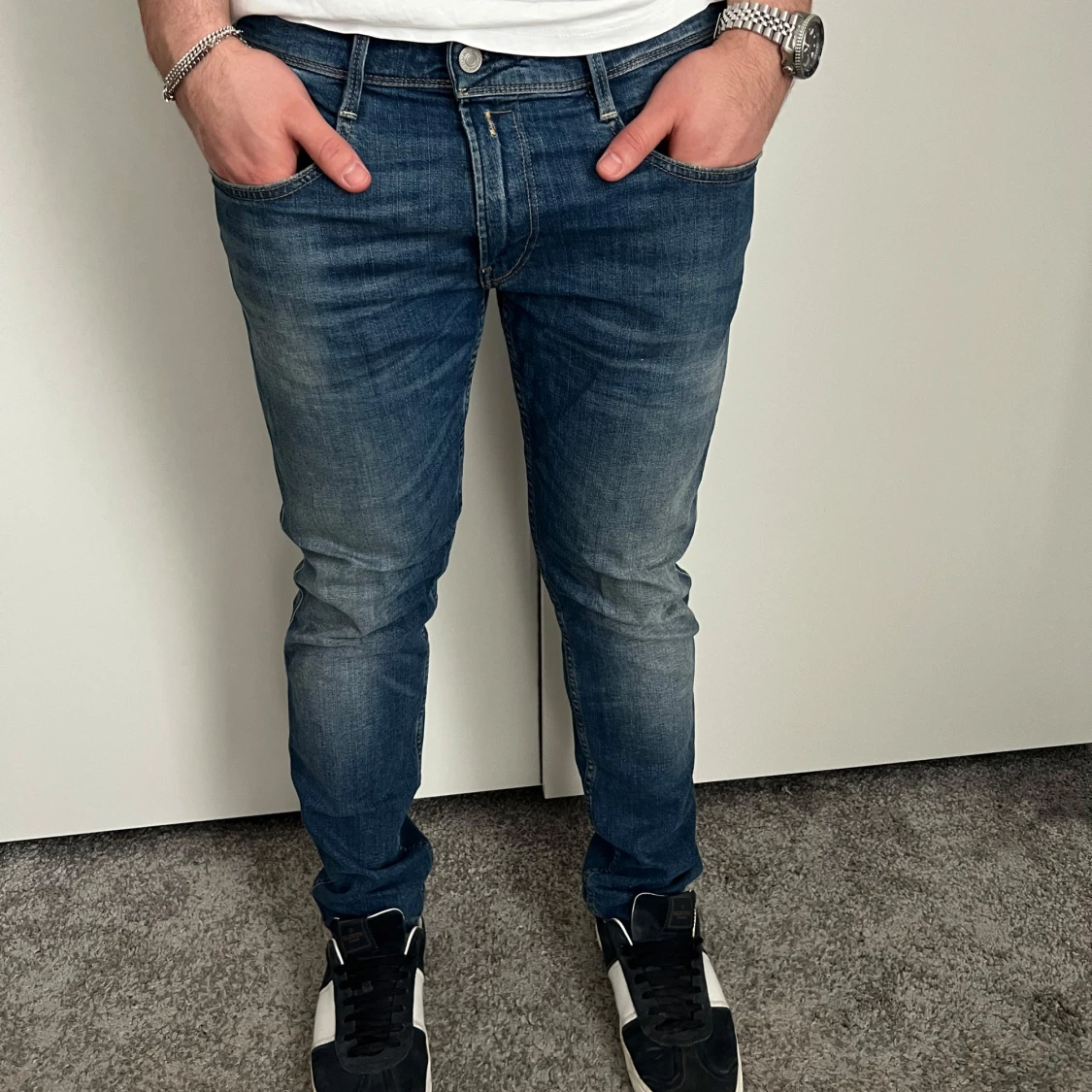 Tjena, säljer nu dessa jeans från Replay | Storleken är 34/30 | Färgen är mörkblå och skicket är 9,5/10 | Hör gärna av dig vid minsta lilla fundering 😊