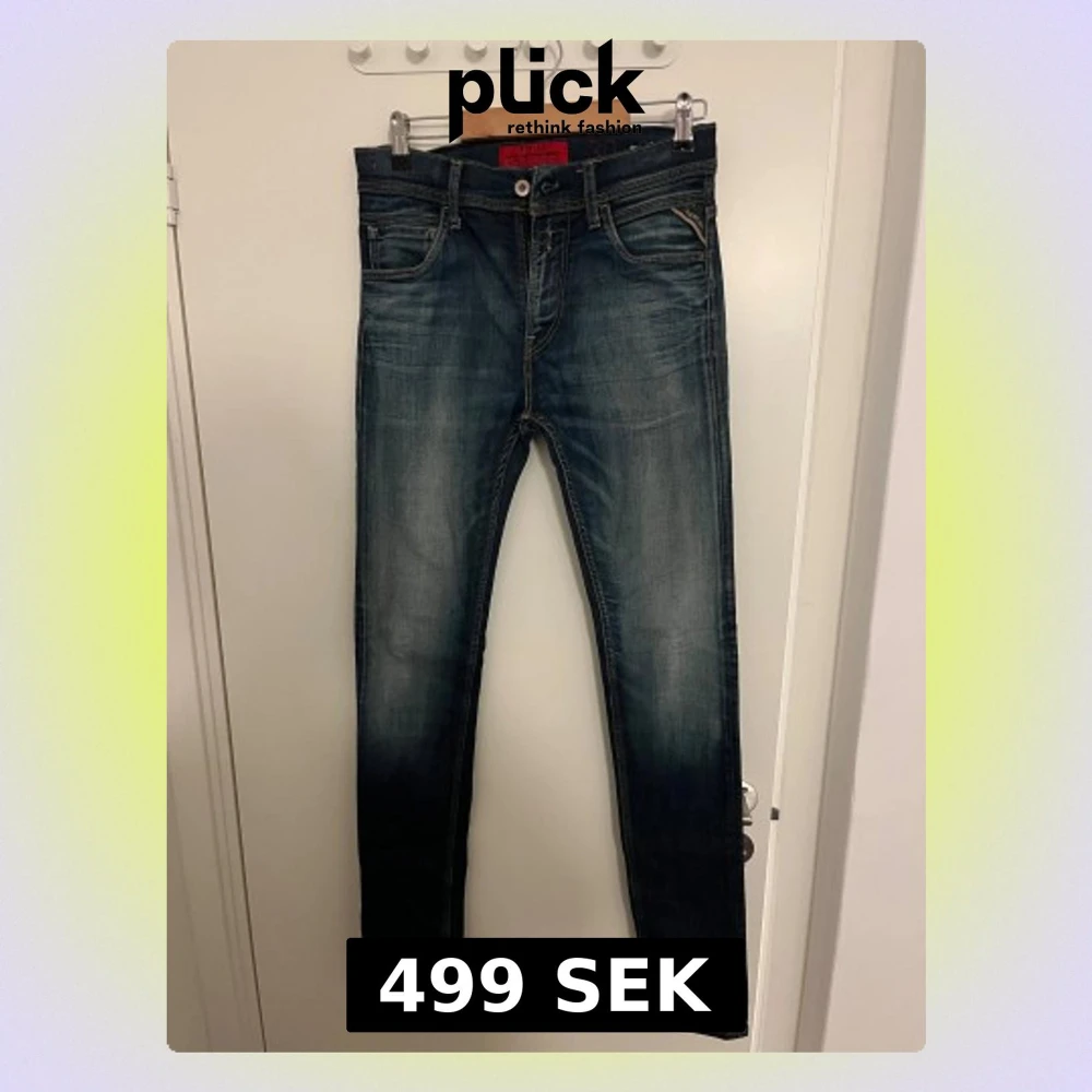 Riktigt snygga och sköna replay jeans slim fit i mörkblå. Passar dig som gillar en tajtare passform och normal midja. Köpte dessa för någon vecka sen, men säljer dem nu eftersom de passade inte mig. W30 L32