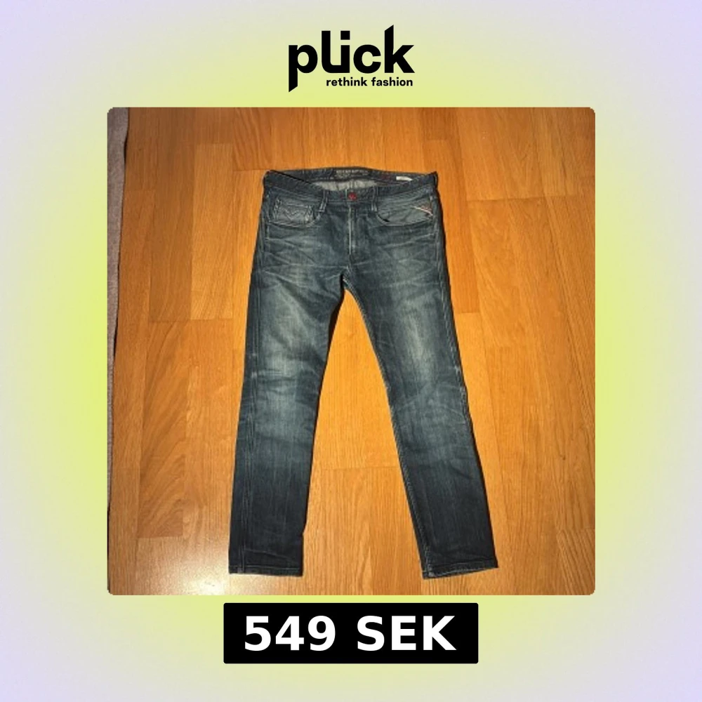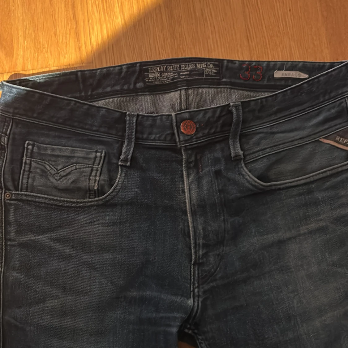 Tja säljer ett par Replay anbass jeans I W 33! De är i mycket bra skick och har inga defekter. Om du har frågor eller funderingar så hör av dig 🤙 Mvh JacobsCloset