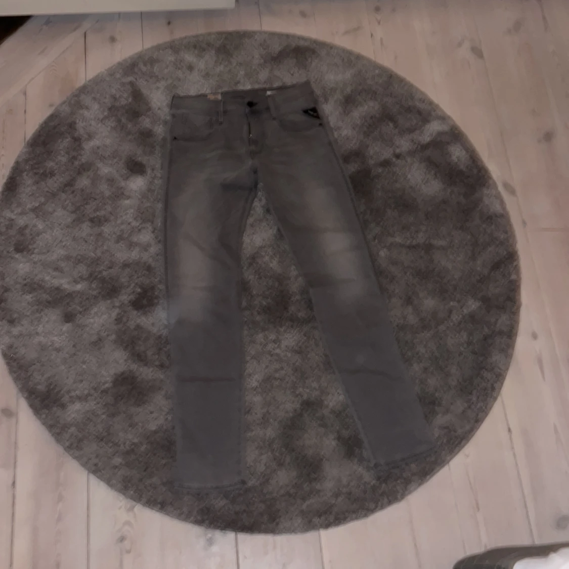 Säljer ett par gråa Replay anbass jeans i slim fit med klassisk femficksdesign. Jeansen har raka ben och snygga slitningar framtill för en cool look. Passar dig som gillar stilrena och moderna jeans med bekväm passform.Nya pris 1800kr jag säljer för 559kr