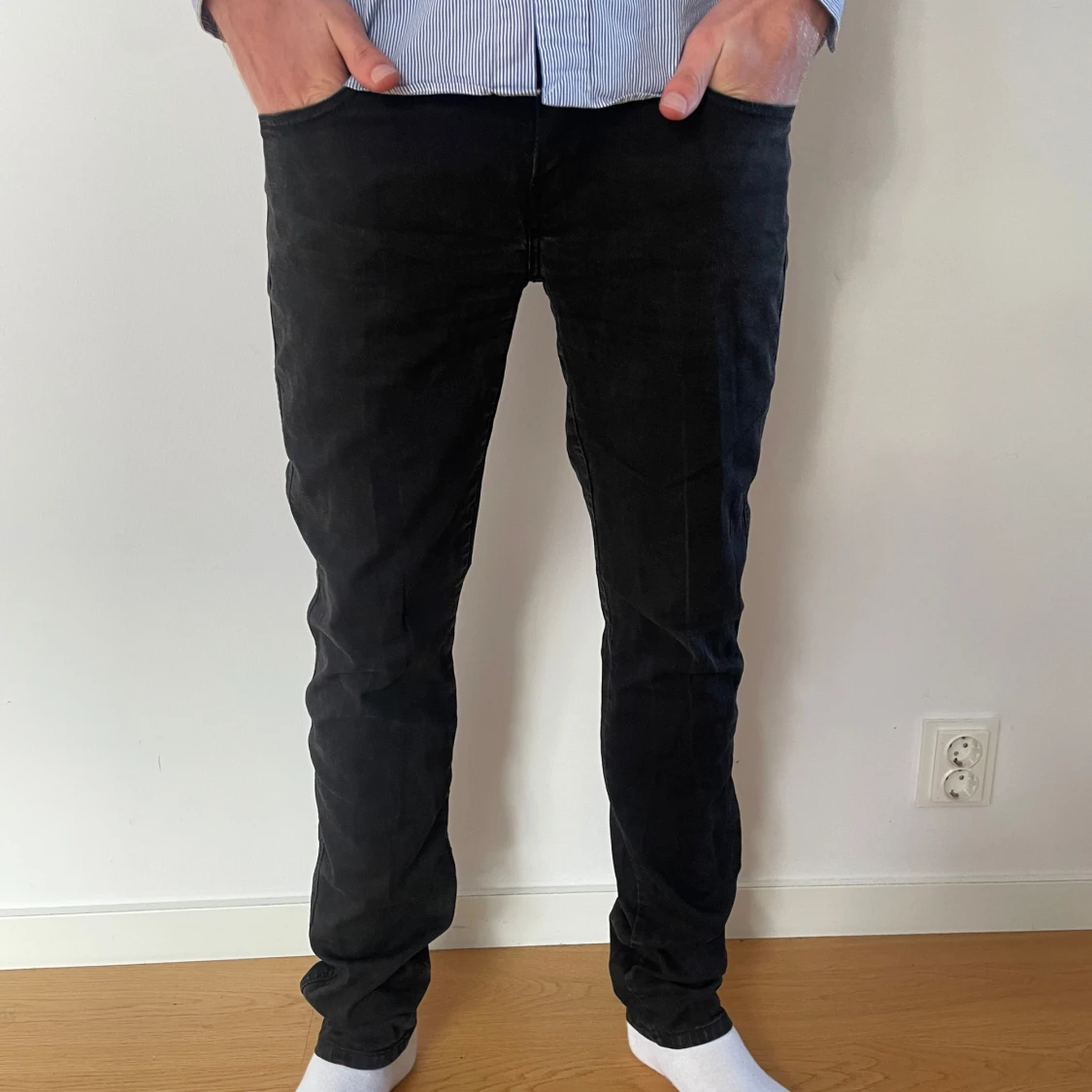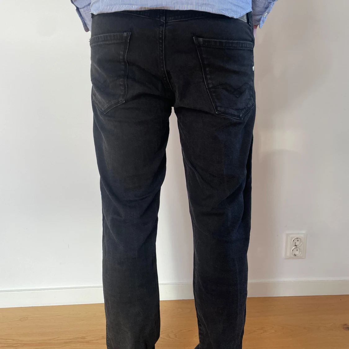 Replay anbass jeans i en svart/grå färg Knappt använda skick 9/10. Kontakta oss om ni har några frågor!😄 Modell: 184cm och 70kg