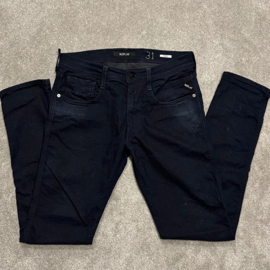 Säljer dessa mörkblå Replay Anbass jeans (slimfit)! Jeansen är i bra skick, inga defekter men släpper de för en steal, size 31/32. Skriv vid funderingar, inga bud tack.