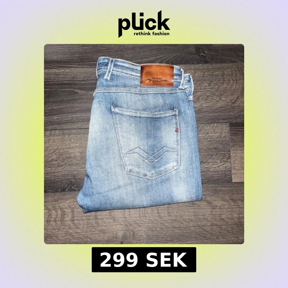 Säljer ett par Replay Anbass jeans i ljusblå tvätt med slitningar och lätt distressed look. Klassisk femficksmodell med snygga detaljer på bakfickan och läderpatch i midjan. Jeansen är i stretchig bomull och har en slim passform. Midja 44cm längd 93cm.OBS OBS Jeansen är uppsydda från L34 till att motsvara L30 men kolla måtten noggrant. JAG SKICKAR INGA FLER BILDER NÄR JAG BÄR JEANSEN.
