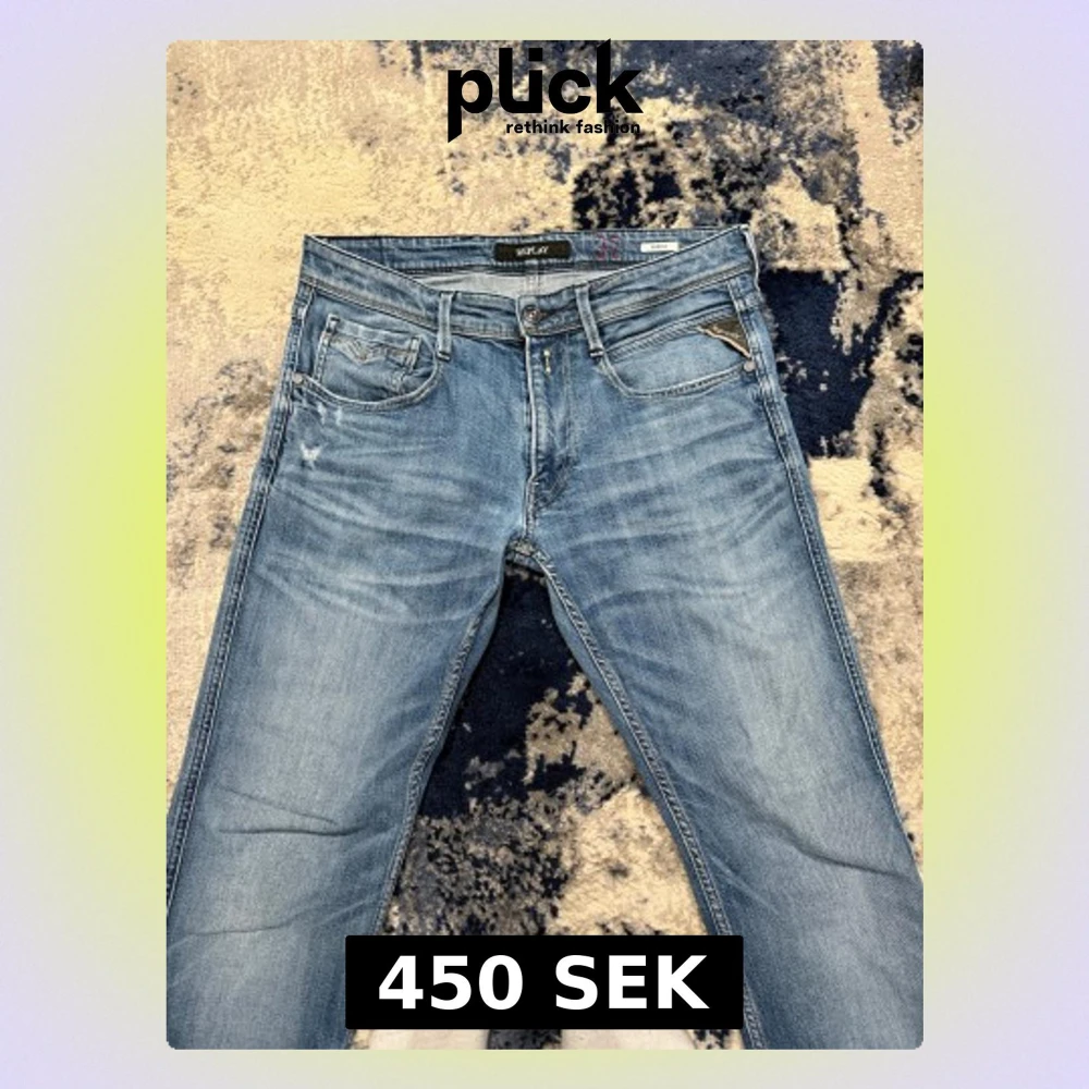 Snygga Replay Anbass jeans i ljusblå tvätt med små slitningar. Storlek 32/32 men passar även mindre. Han på bild är 185cm, 75kg o de är lite tajta på han. Hör av er vid funderingar!