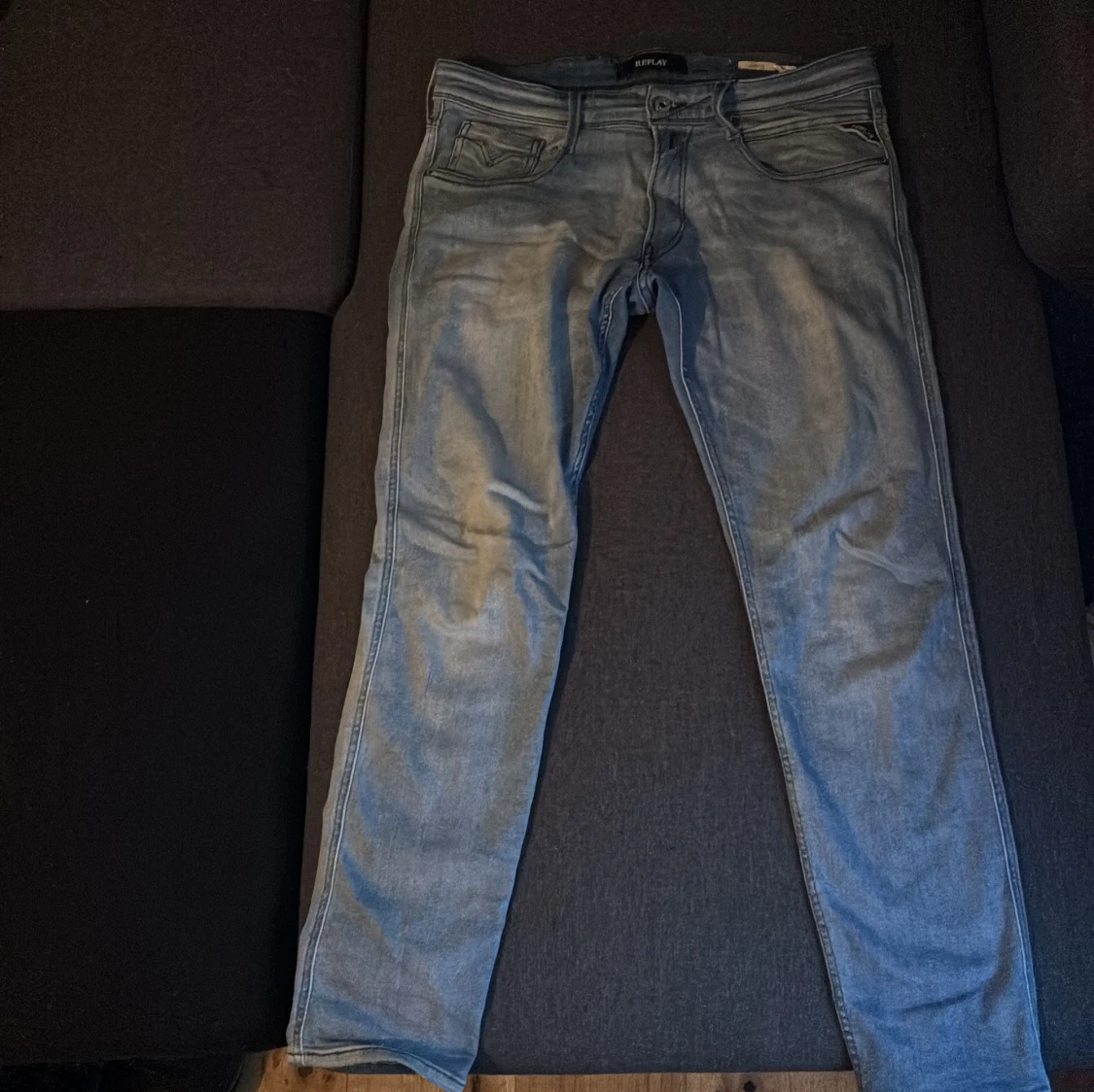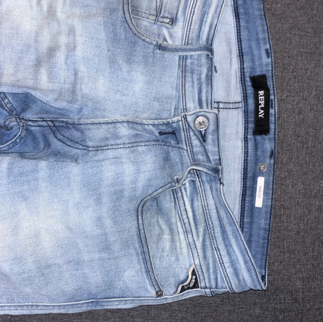 Säljer ett par Replay Anbass jeans i ljusblå tvätt. Klassisk femficksmodell med dragkedja, raka ben och broderade bakfickor. Jeansen är i bomull och har en modern, slim passform. Perfekta för dig som gillar stilrena och bekväma jeans. Längd 32. Har knappt använt dom.