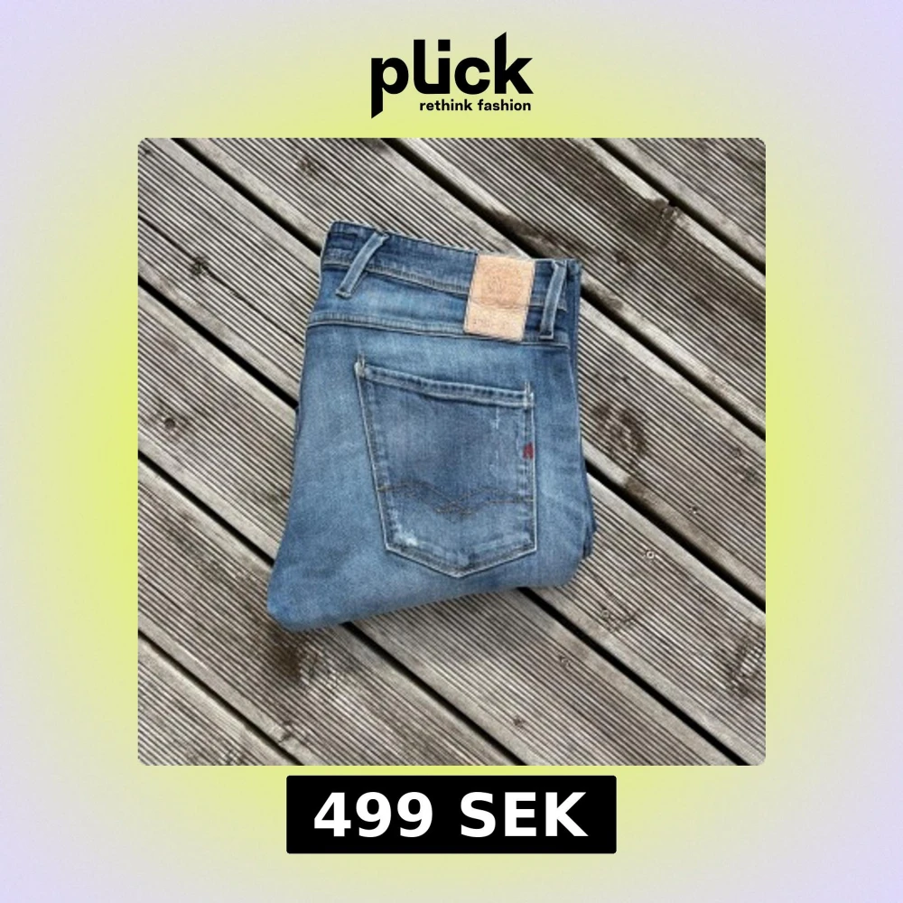 Säljer ett par Replay Anbass jeans i ljusblå tvätt med klassisk femficksdesign och snygga slitningar. Jeansen har rak passform, normal midja och detaljerad bakficka med Replay-logga. Perfekt för dig som gillar stilrena och bekväma jeans. Kom gärna med frågor!🙌 W33 L32