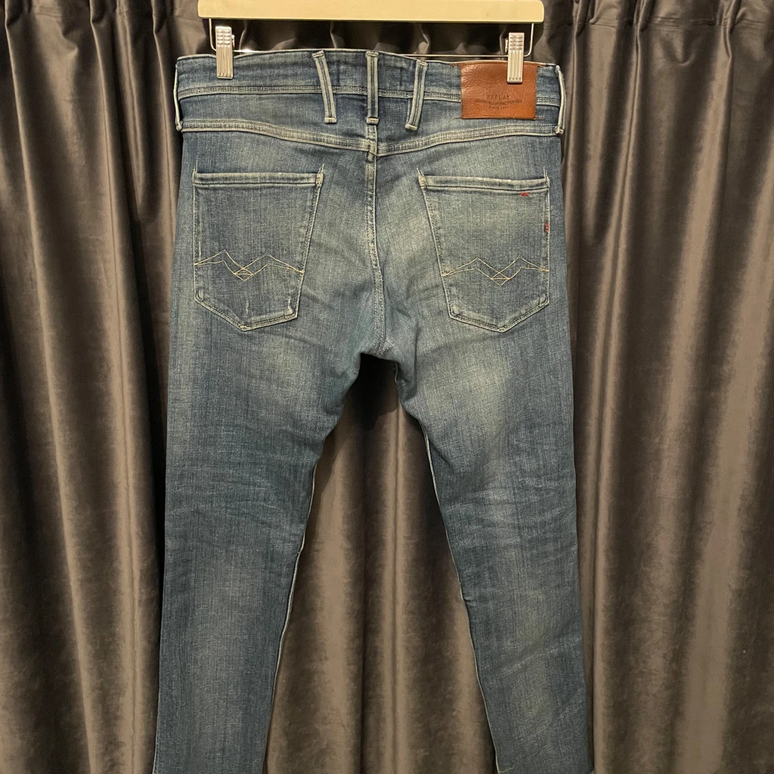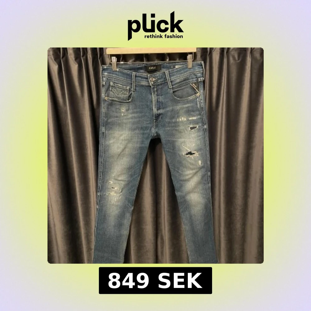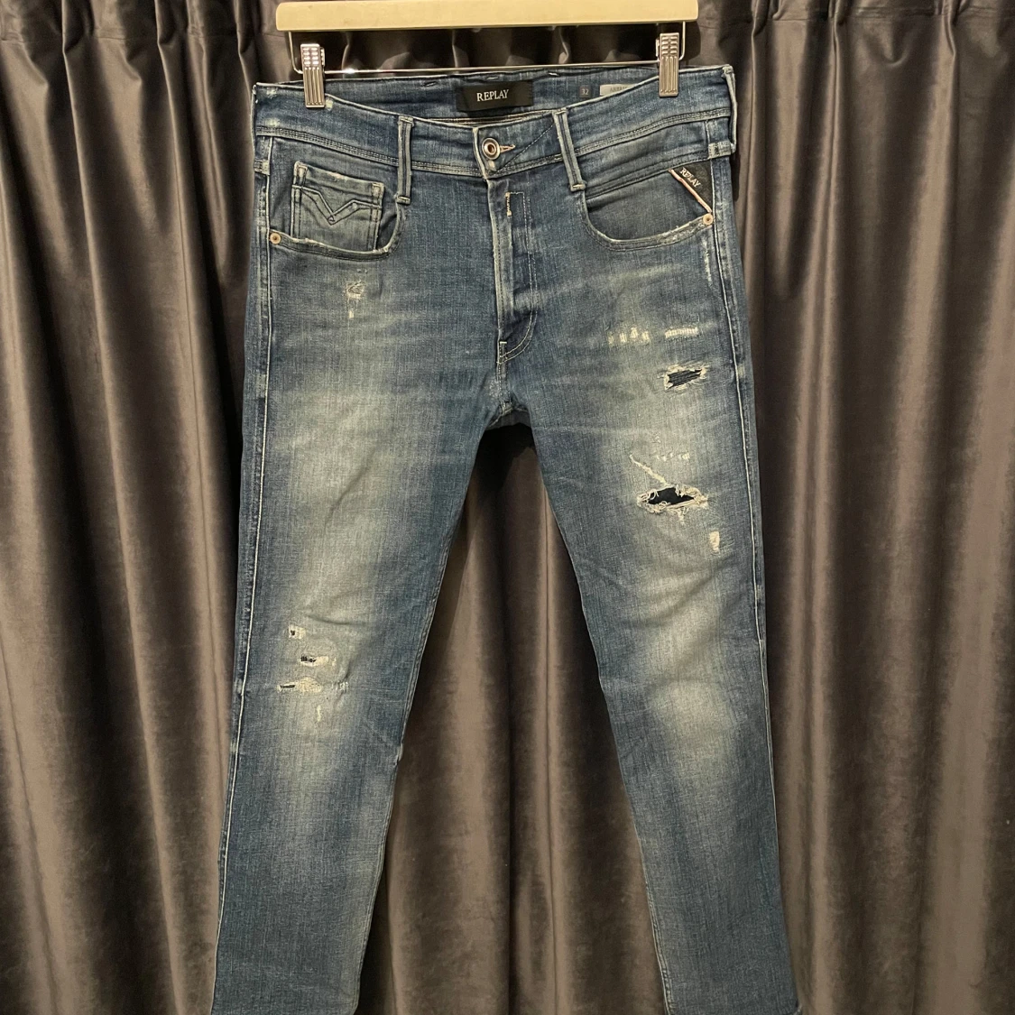 Replay anbass - skick 8/10, fint skick! - stl 32/32 - skriv om ni vill ha mått 📏- Inga defekter förutom en liten lagning på baksidan men som är inte är märkbar - fetaste jeansen på marknaden, snygga slitningar och snygg färg! - hör av er vid frågor!🙌